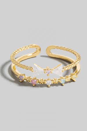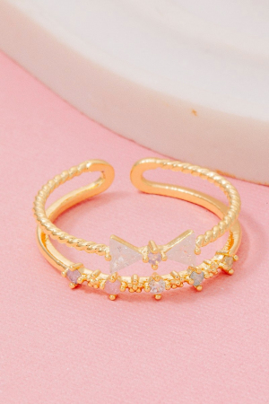 - This ring introduces a stunning two row rhinestone bow style. Step into a world of refined taste as this ring effortlessly refines the details of your outfit.