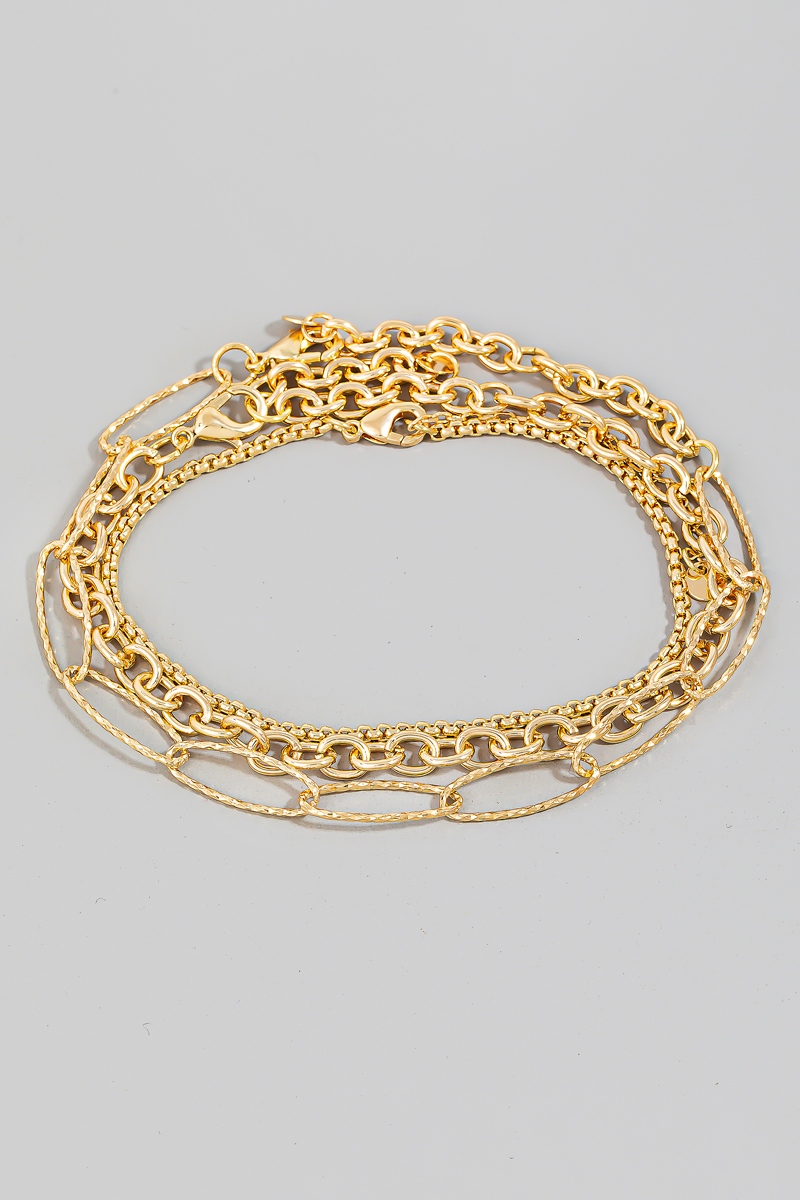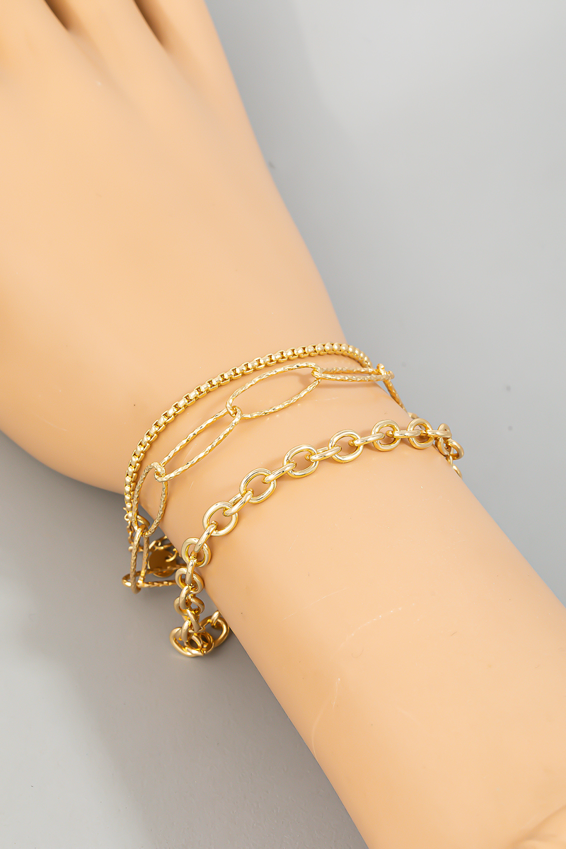 - This bracelet brings a stunning 3 chain layered style. Celebrate individuality with this accessory that effortlessly expresses your unique sense of style.