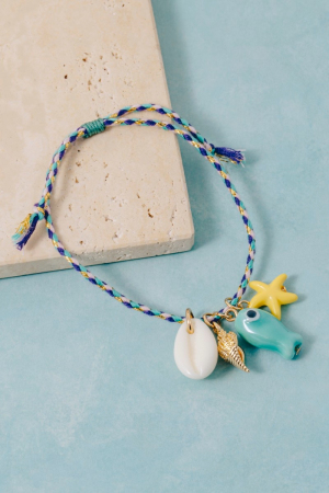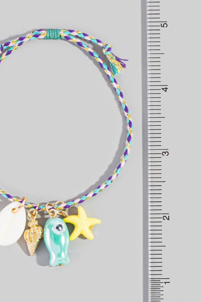 • This bracelet introduces a stunning acrylic sea life charms braided turquoise cord style. Revel in the intricate design that effortlessly distinguishes this bracelet, making it a statement piece.