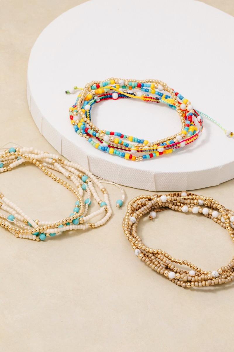 - This bracelet brings a luxurious assorted beads and braided cord set style. Explore a refined sense of style with this bracelet, seamlessly elevating the chic factor of your look.