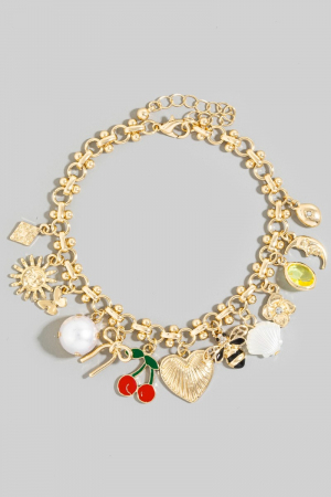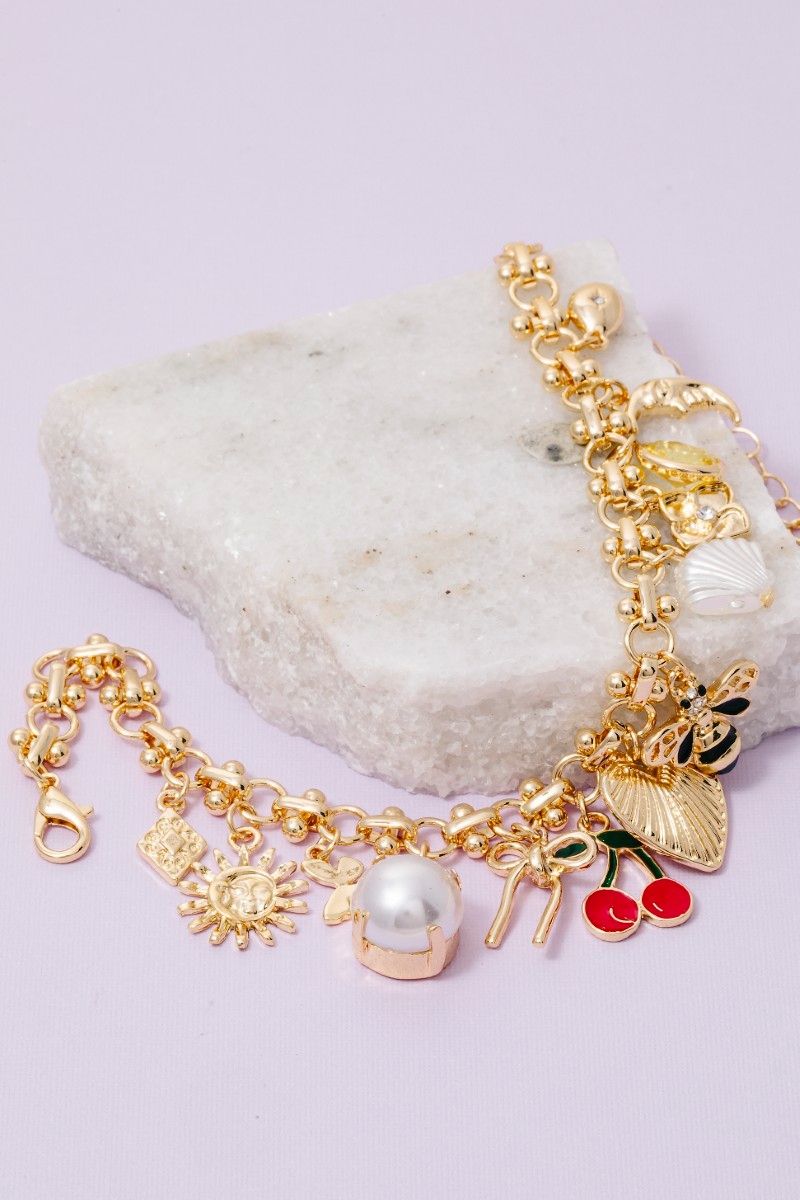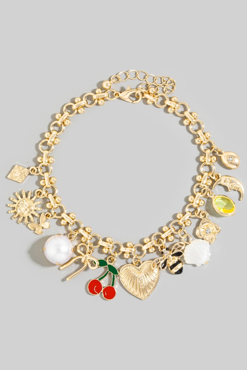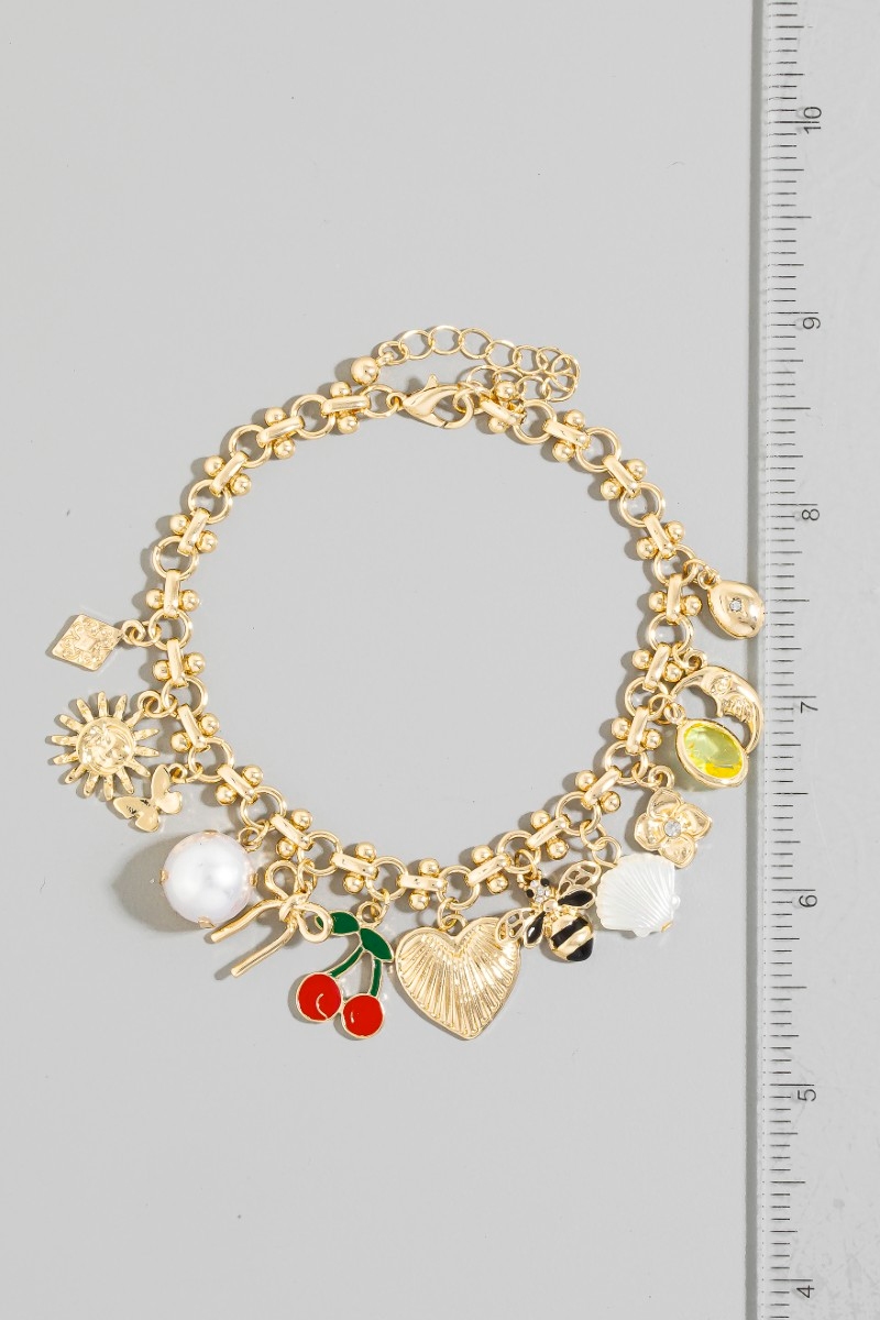 - This chain bracelet brings a stunning assorted charms intricate style. Savor the allure of detailed craftsmanship in this exquisite chain bracelet.