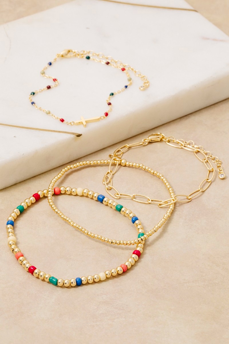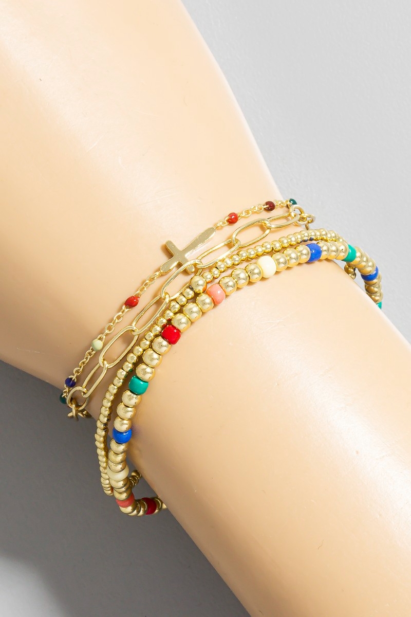 - This bracelet showcases a timeless cross charm mixed beads and chains style. Delight in the nuanced details that make this bracelet a testament to fine design and impeccable taste.
