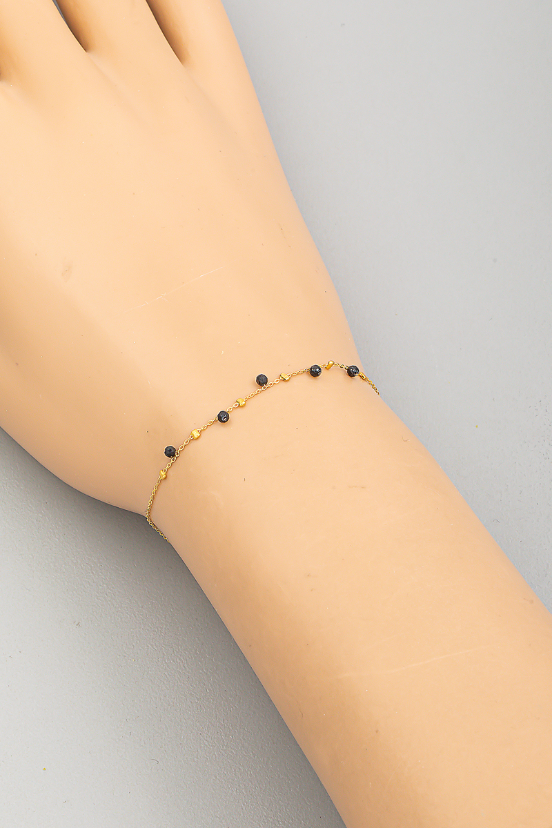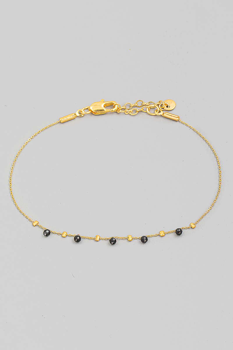 Faceted Semi Precious Oval Stone Charm Beaded Cord Bracelet