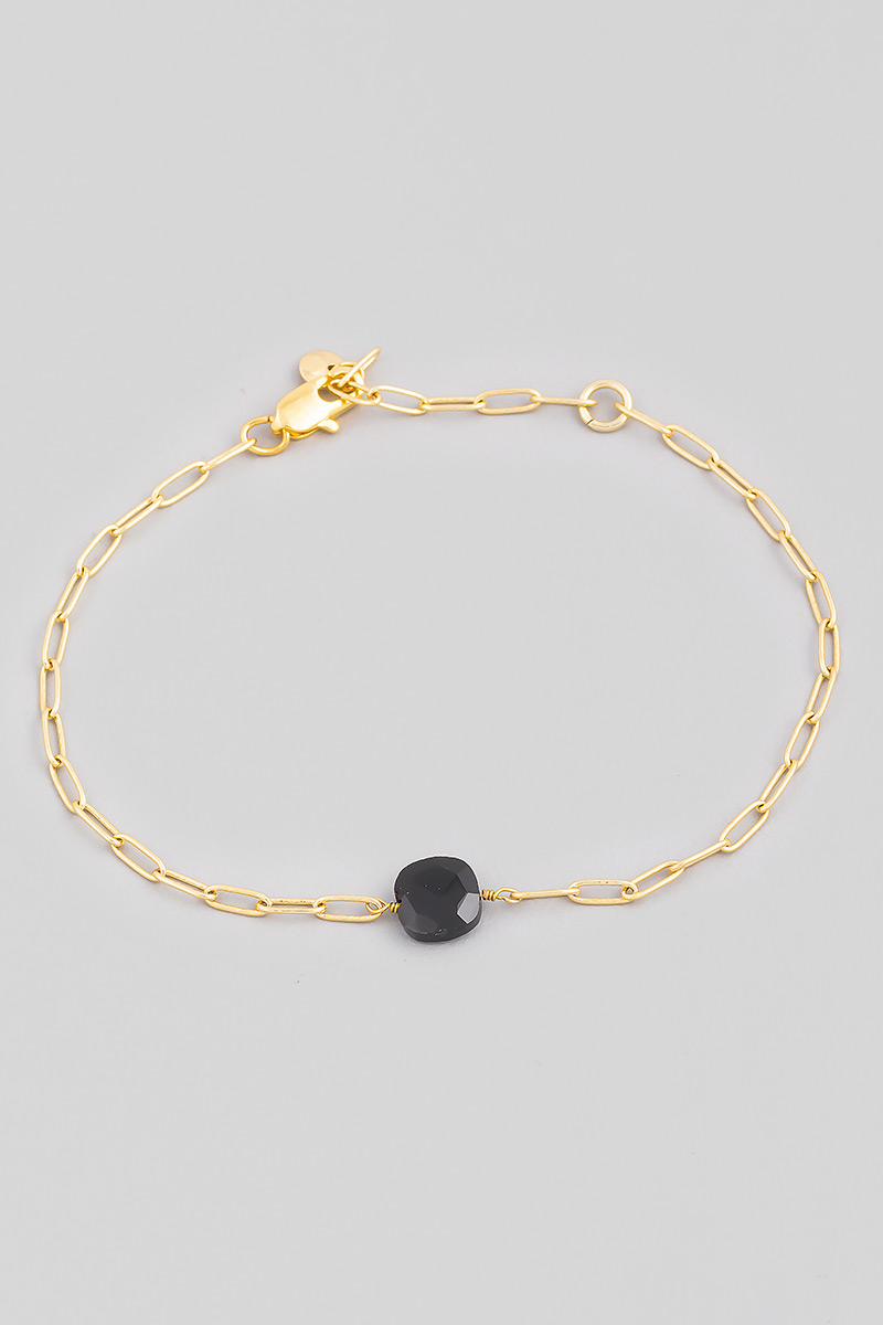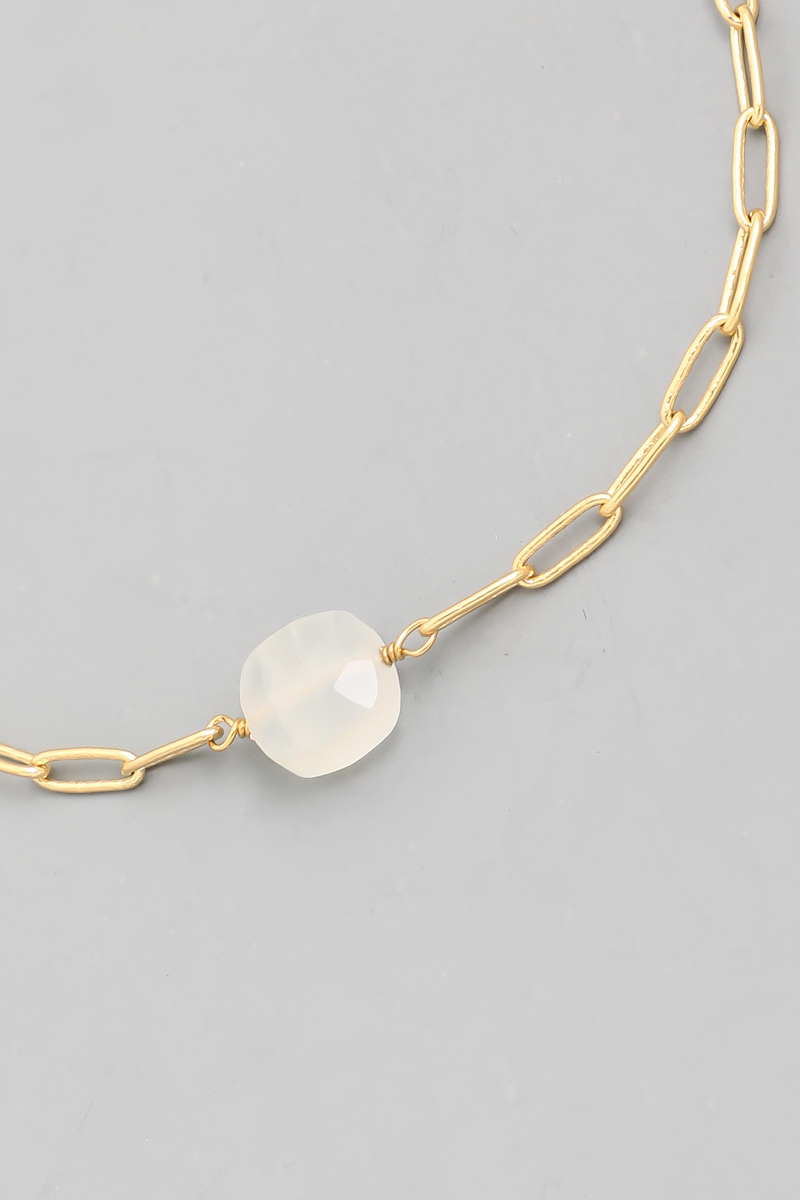 Faceted Semi Precious Oval Stone Charm Beaded Cord Bracelet