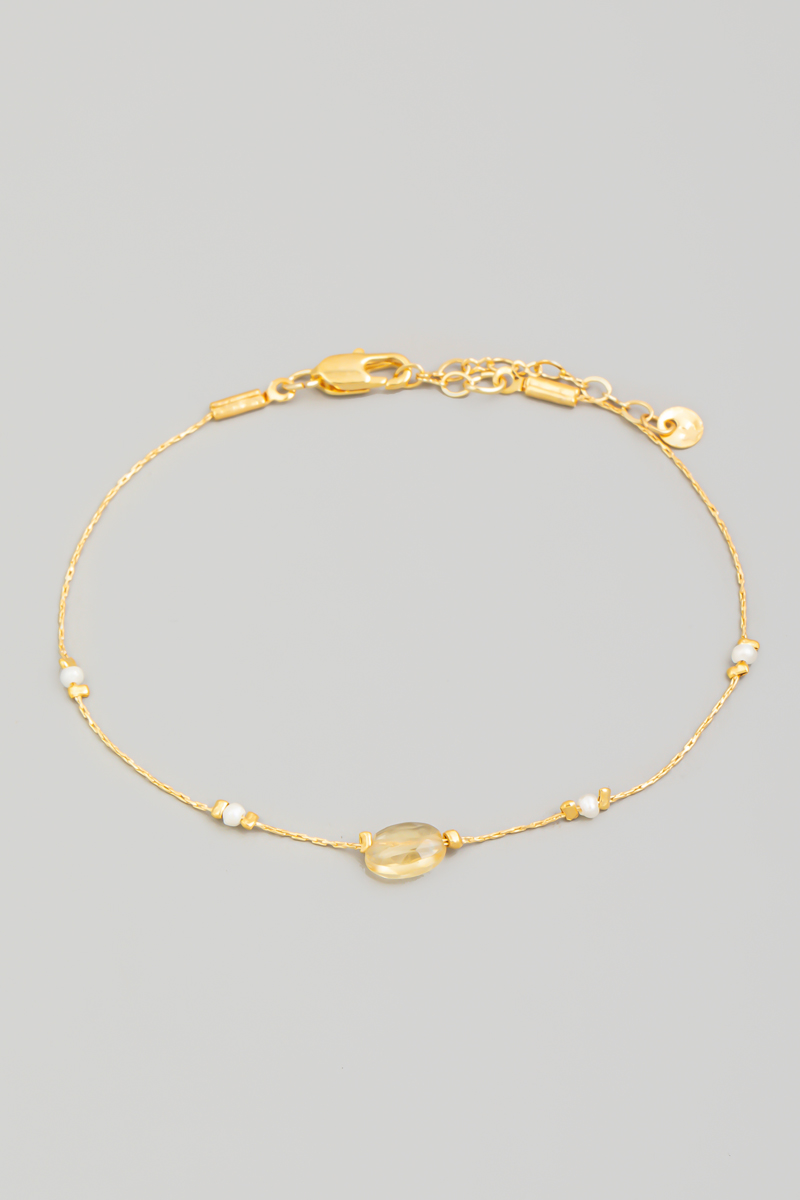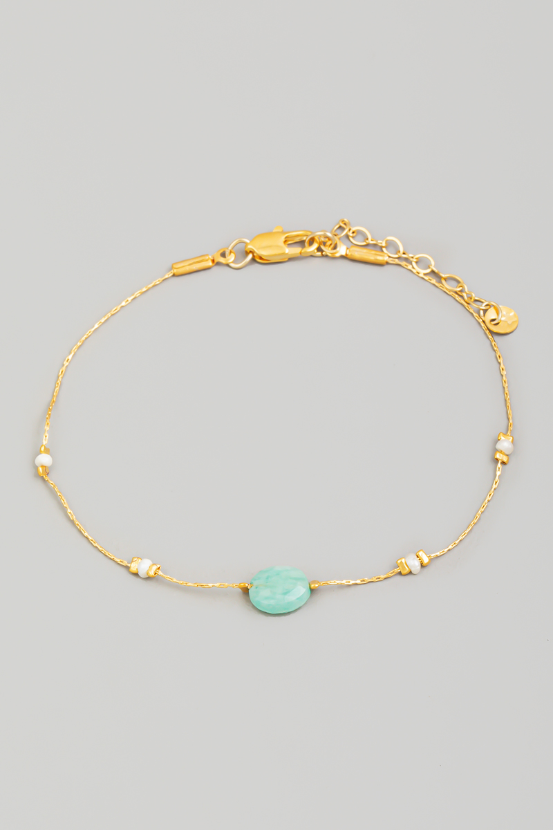 Faceted Semi Precious Oval Stone Charm Beaded Cord Bracelet