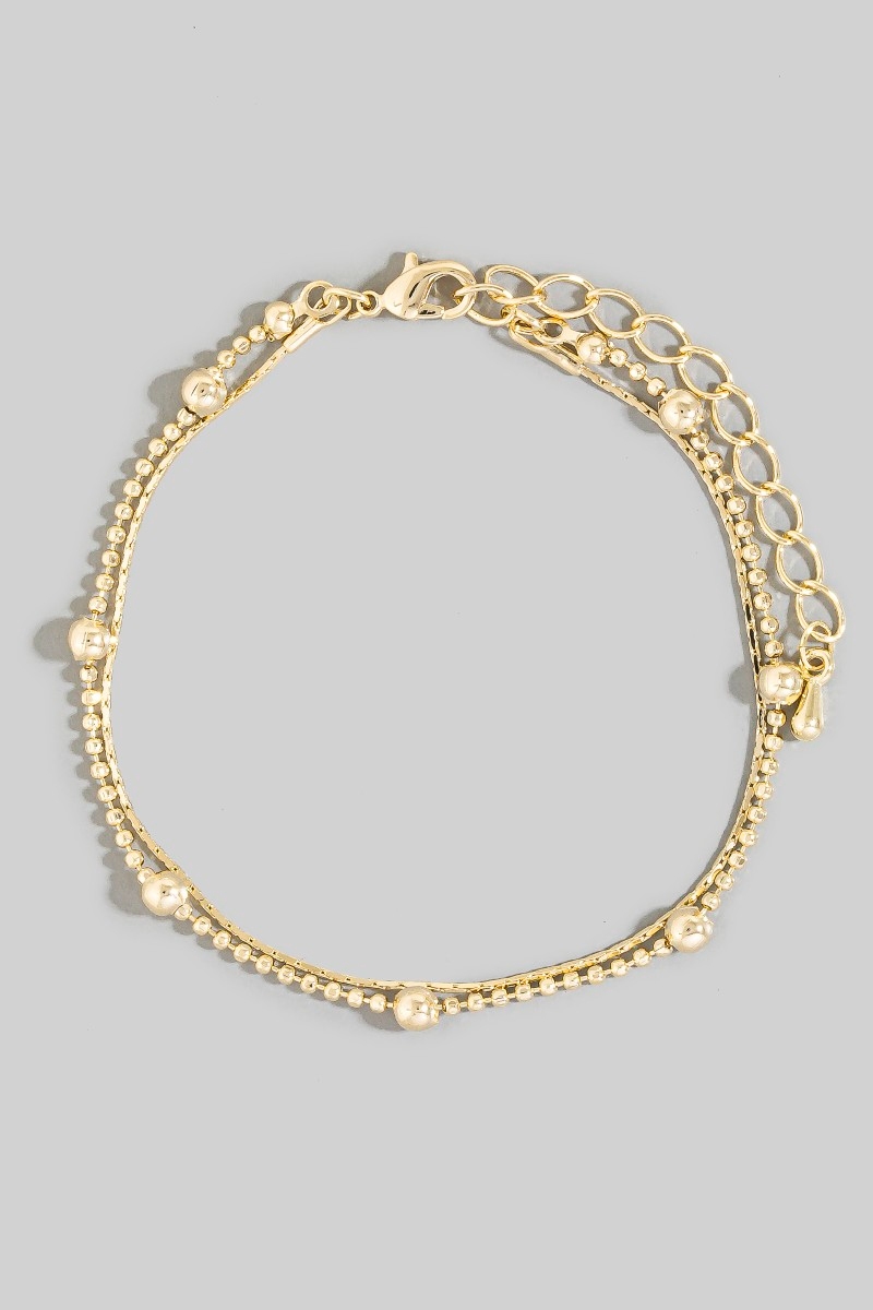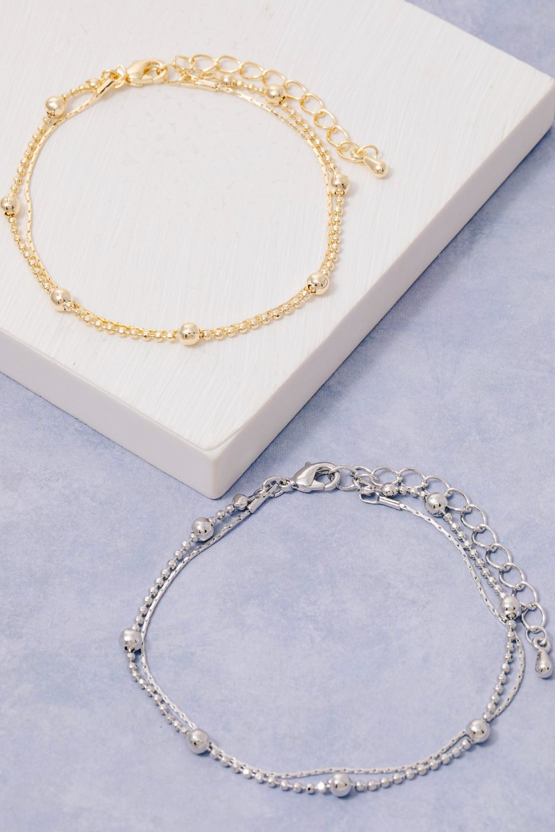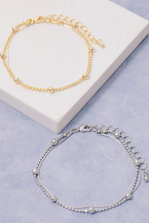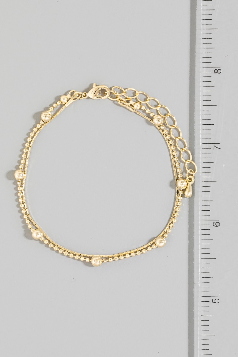 - This chain bracelet displays a fashionable double row ball bead and style. Experience a burst of creativity in accessorizing as this piece effortlessly sets the tone for your unique style.