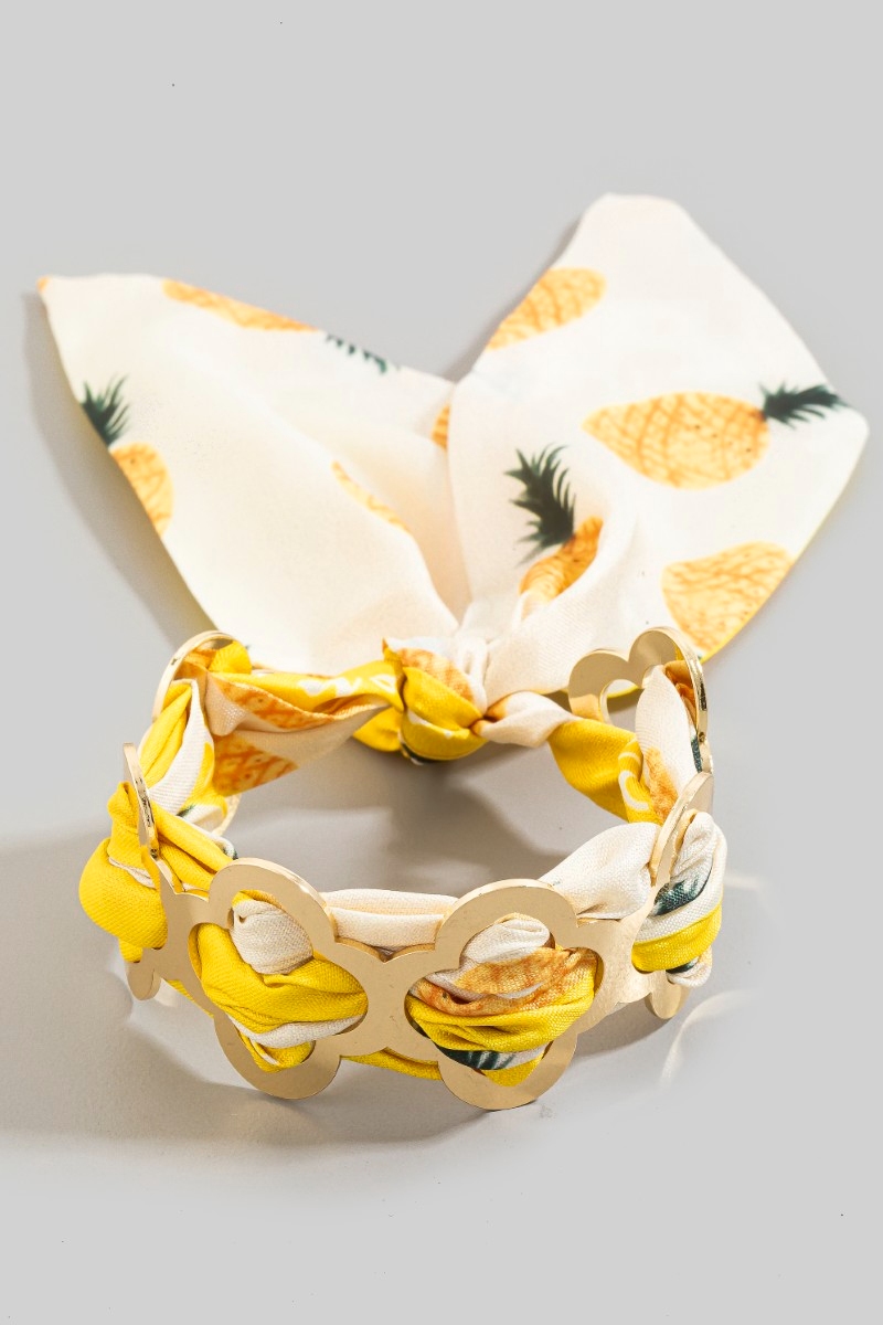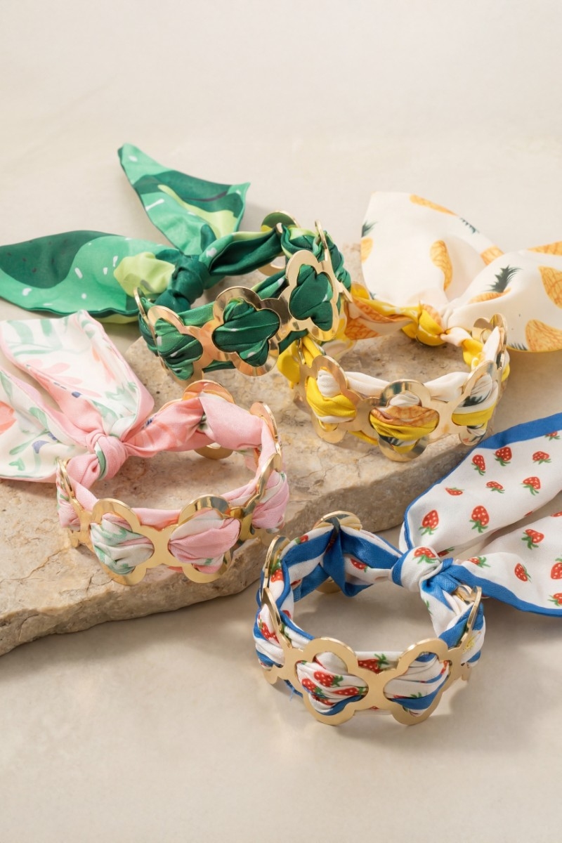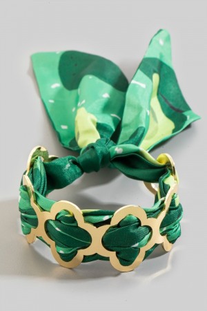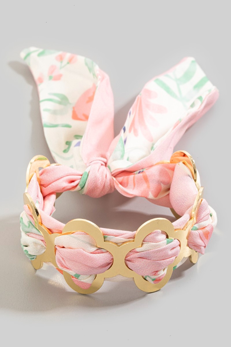 - This cuff bracelet brings a stunning metallic clover and bandana style. Embark on a journey of sartorial refinement as this cuff bracelet effortlessly complements your fashion sense.