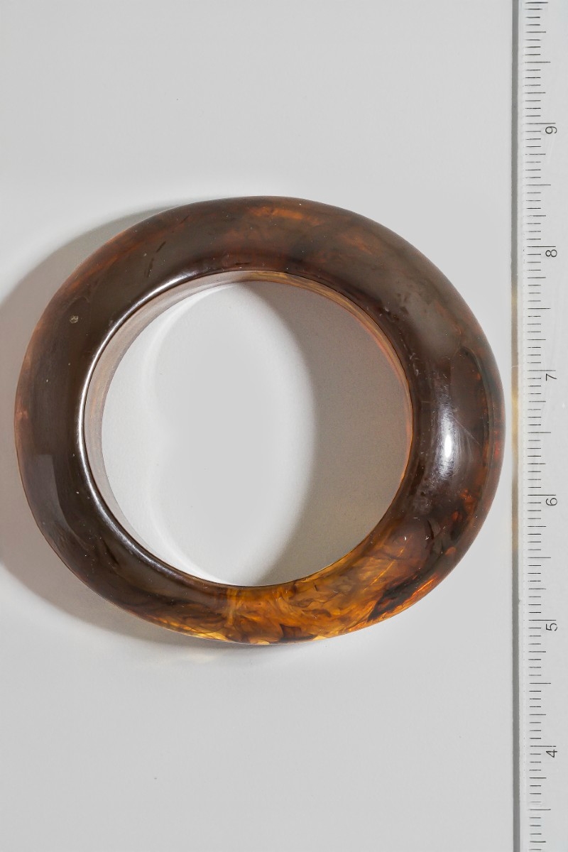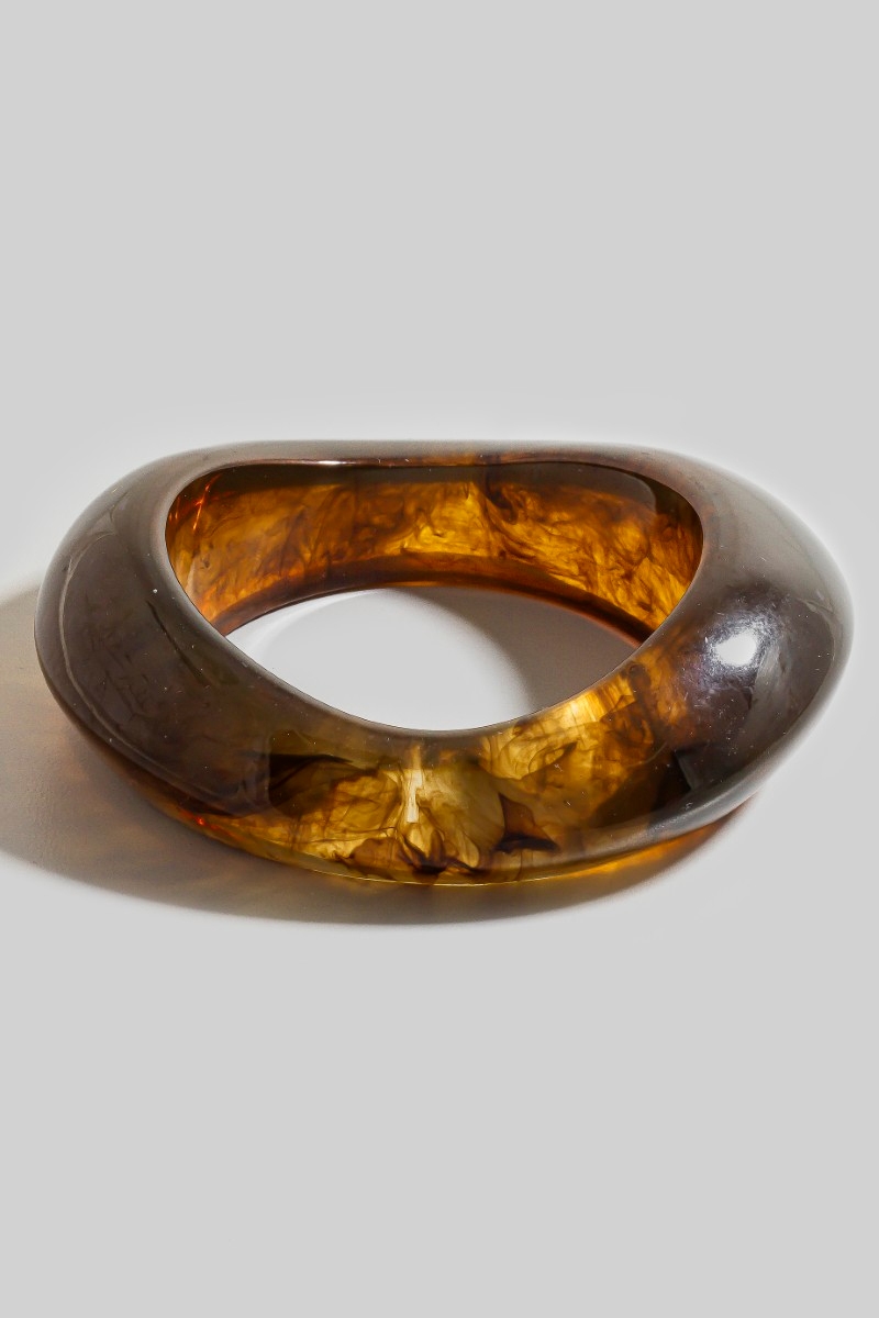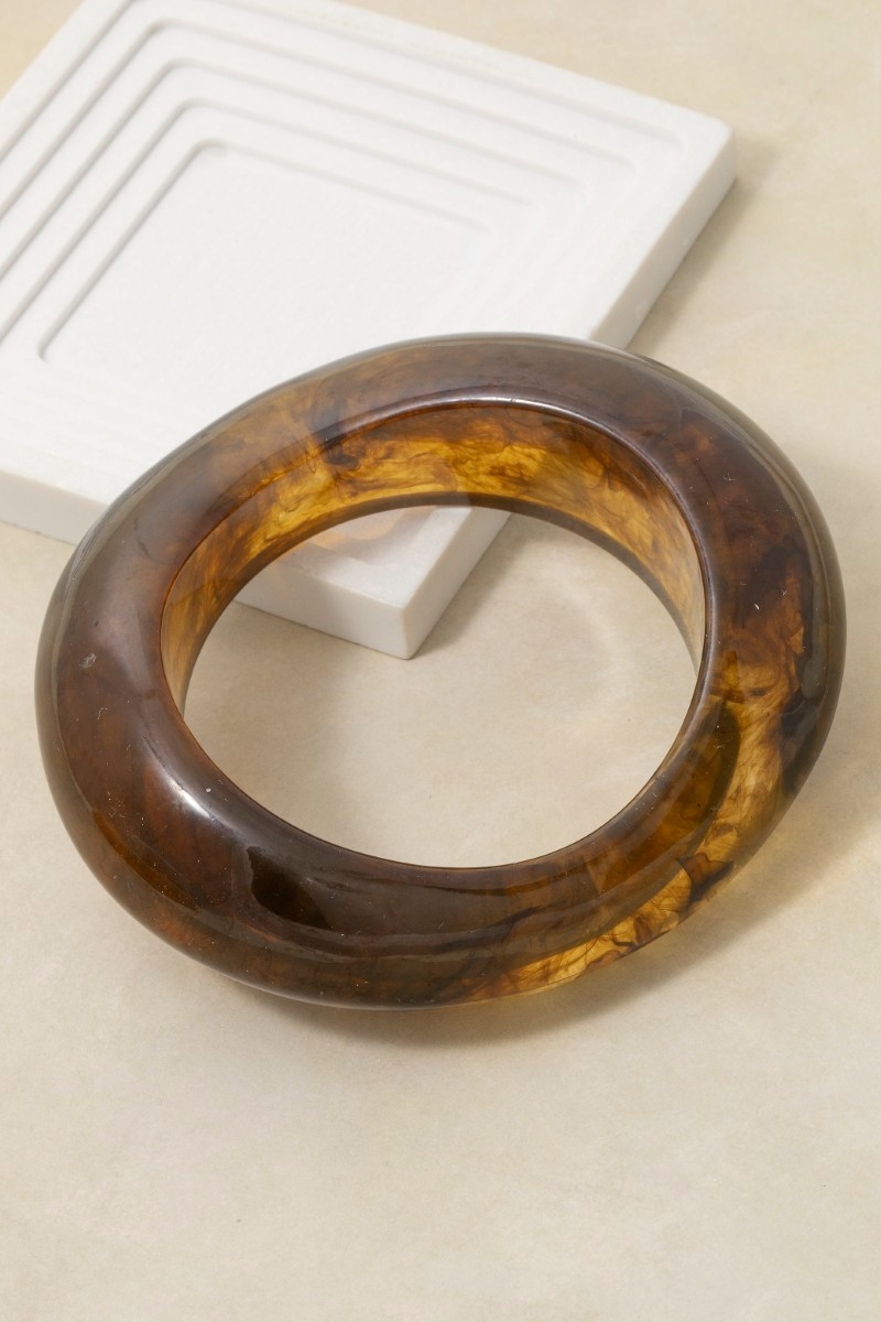 - This bangle bracelet displays a fashionable amber resin thick irregular style. Experience the joy of accessorizing with this piece that effortlessly combines versatility and charm.