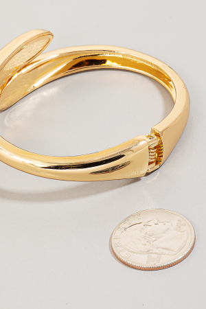 • This bangle bracelet brings a unique hinged metal style. Celebrate individuality with this bangle bracelet that effortlessly expresses your unique sense of style.