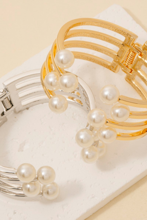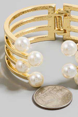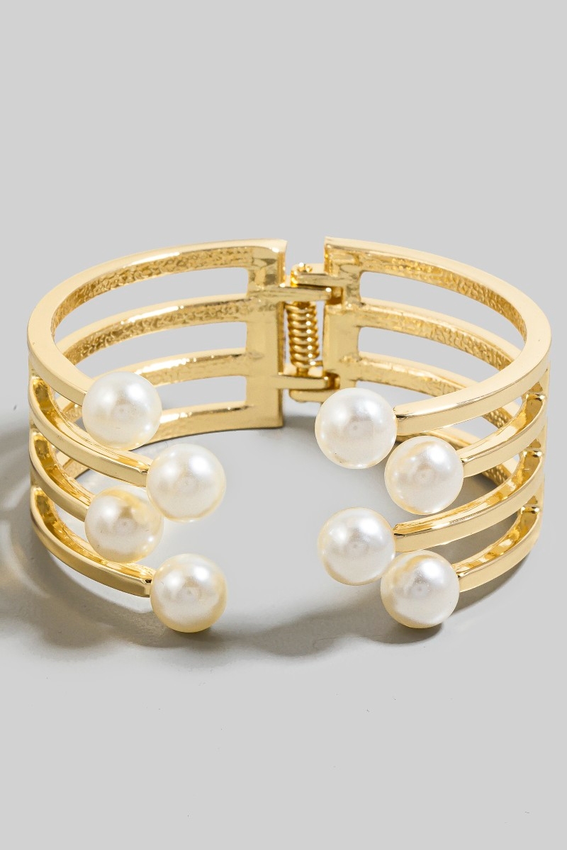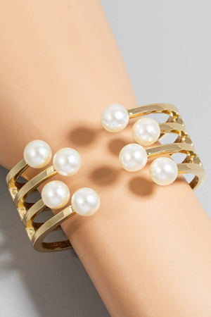 - This cuff bracelet displays a fashionable pearl beaded edge wide style. Immerse yourself in the world of understated glamour as this cuff bracelet effortlessly exudes timeless appeal.