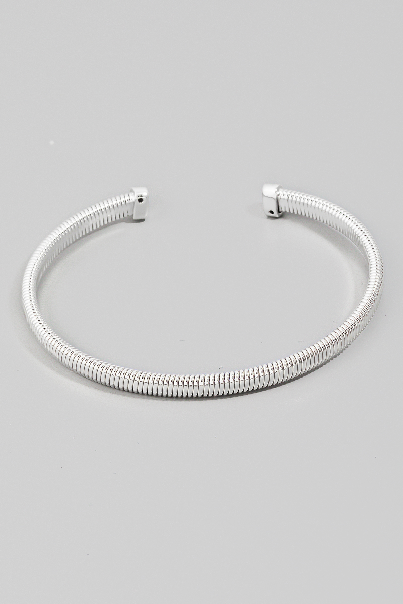 - This cuff bracelet displays a fashionable solid coiled metallic style. Immerse yourself in fashion finesse with this statement accessory.