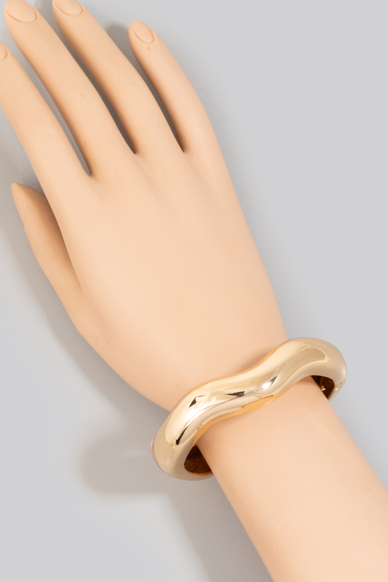 - This bangle bracelet introduces a unique warped wavy style. Step into a world of refined taste as this bangle bracelet effortlessly refines the details of your outfit.