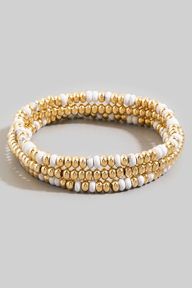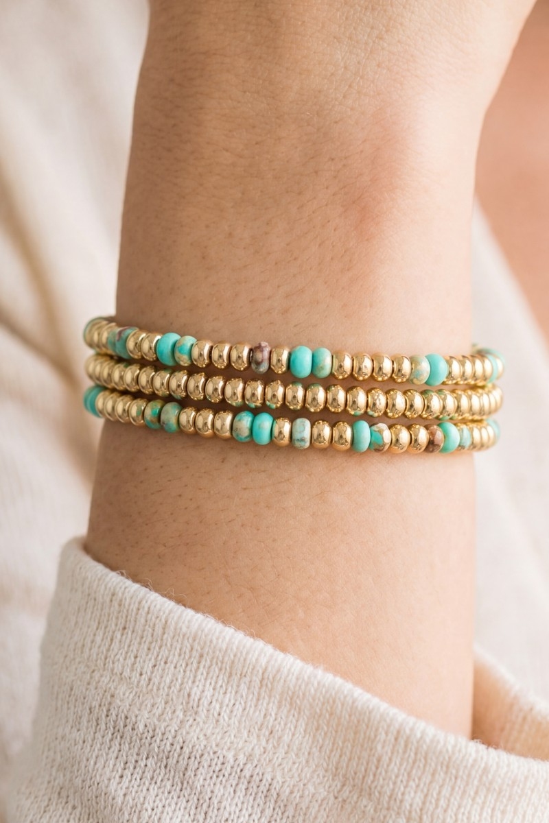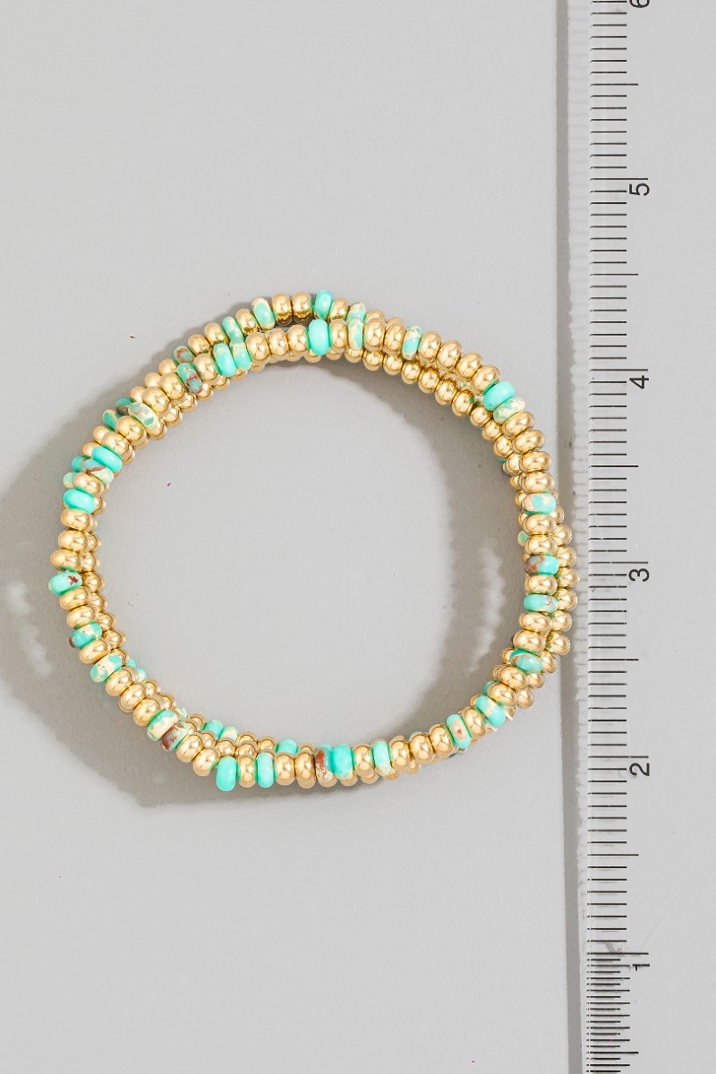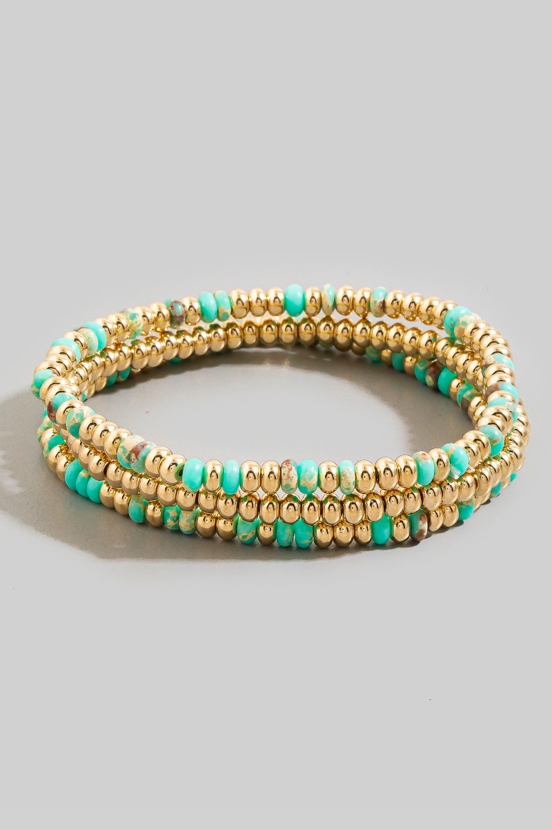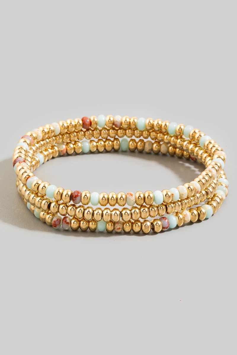 - This stretch bracelet displays a vibrant beaded stone & gold set style. Discover the perfect balance of subtlety and flair as this stretch bracelet effortlessly completes your look.