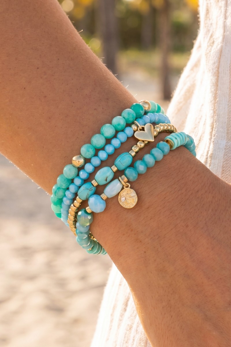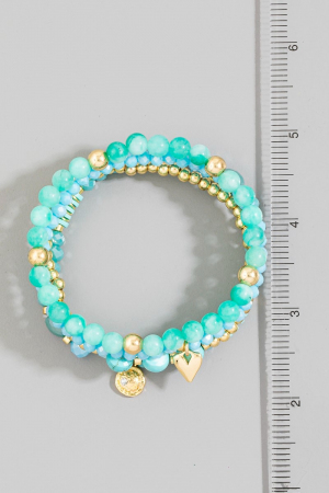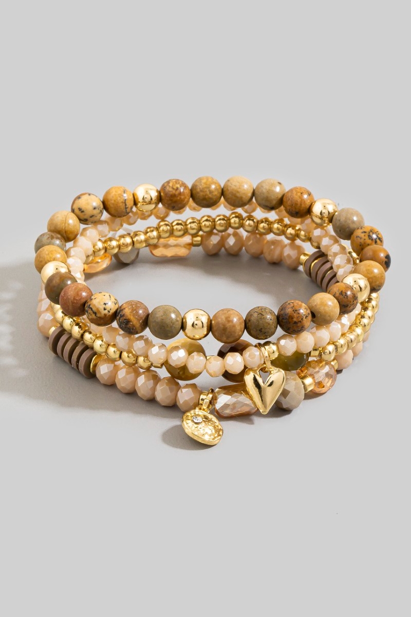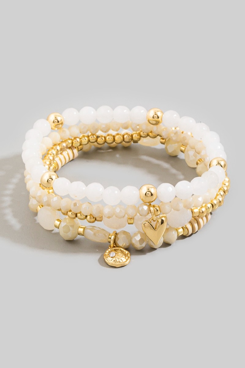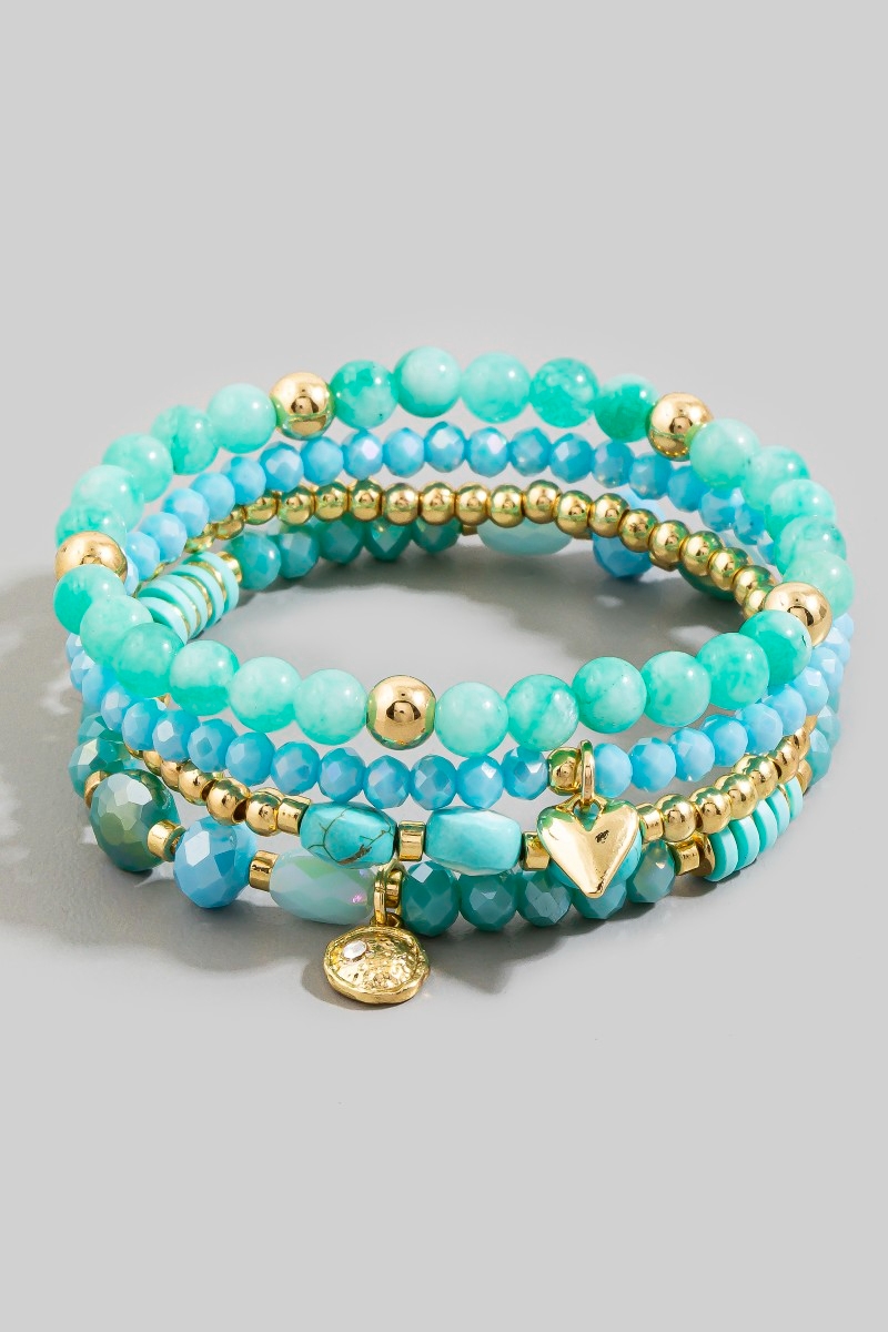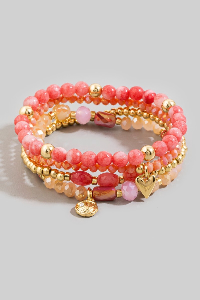 - This stretch bracelet introduces a stunning beaded stone set with gold heart & coin charms style. Delight in the intricate details that make this stretch bracelet an essential element in expressing your fashion identity.