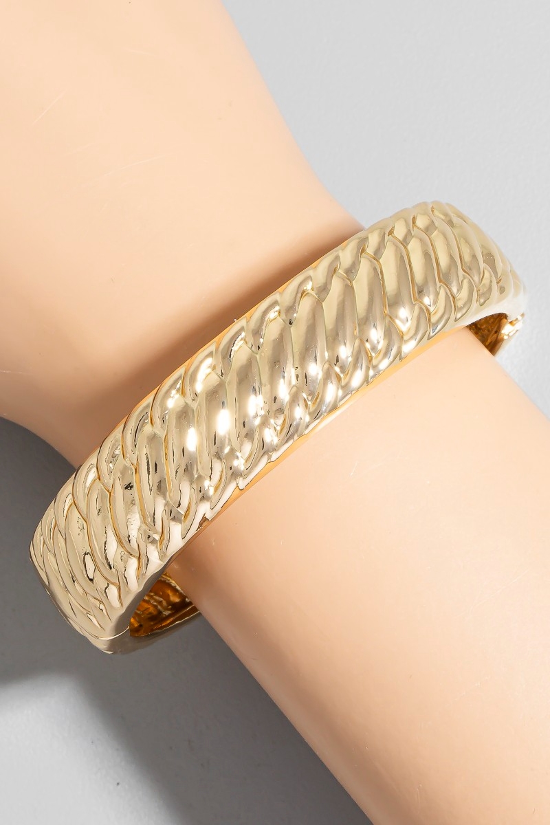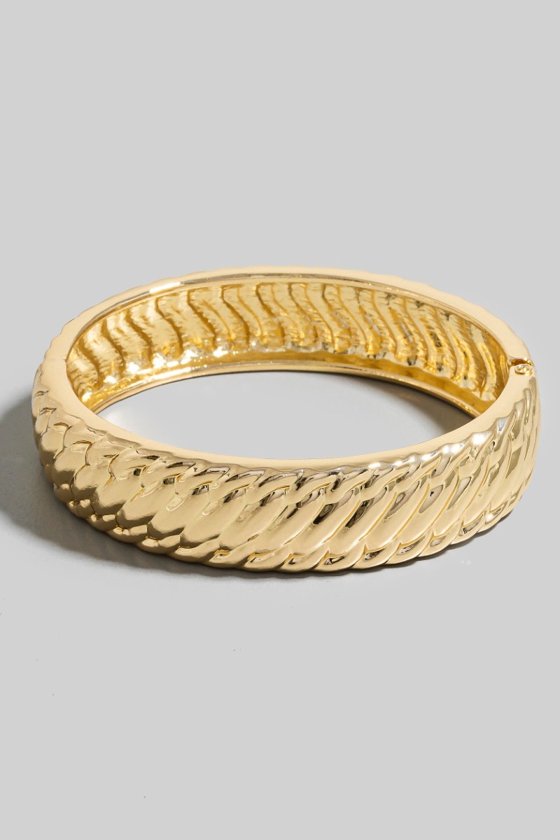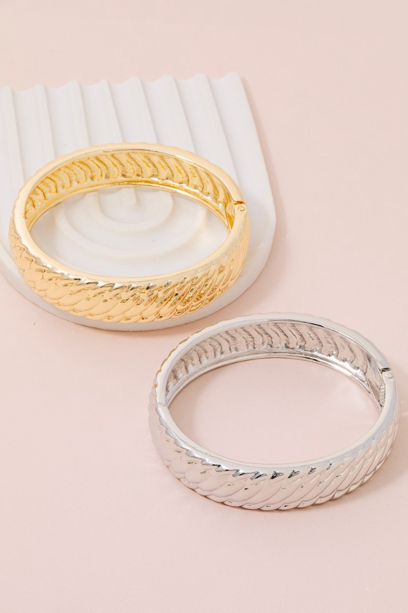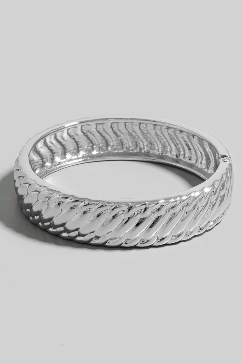 - This bangle bracelet brings a unique braided ribbed metallic style. Immerse yourself in the details of design, as this bangle bracelet effortlessly becomes a conversation starter.