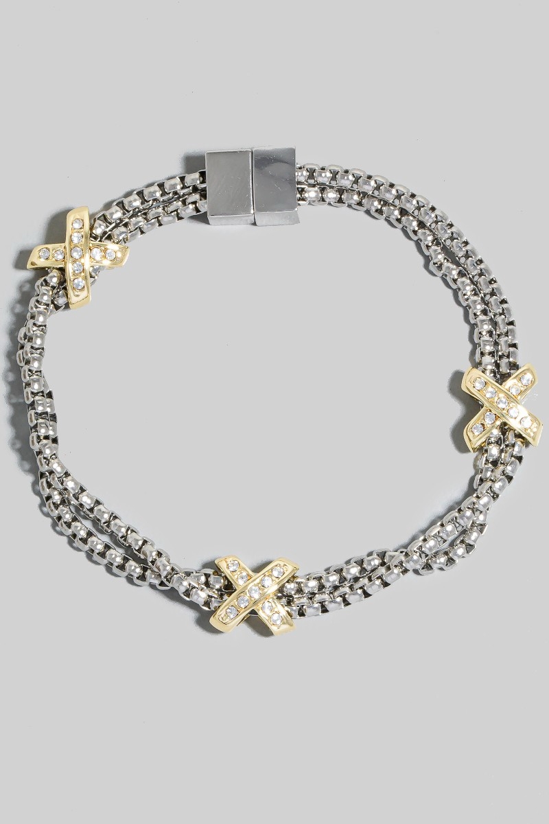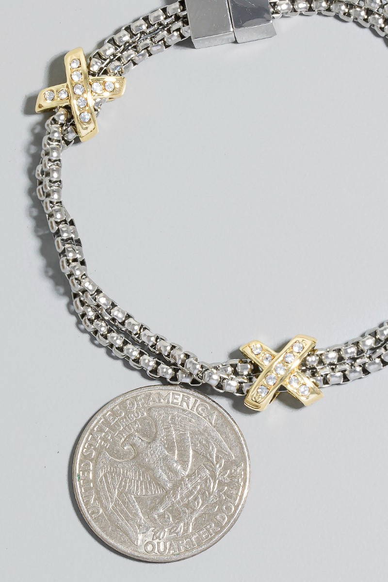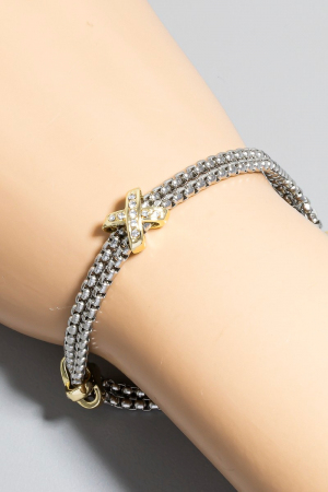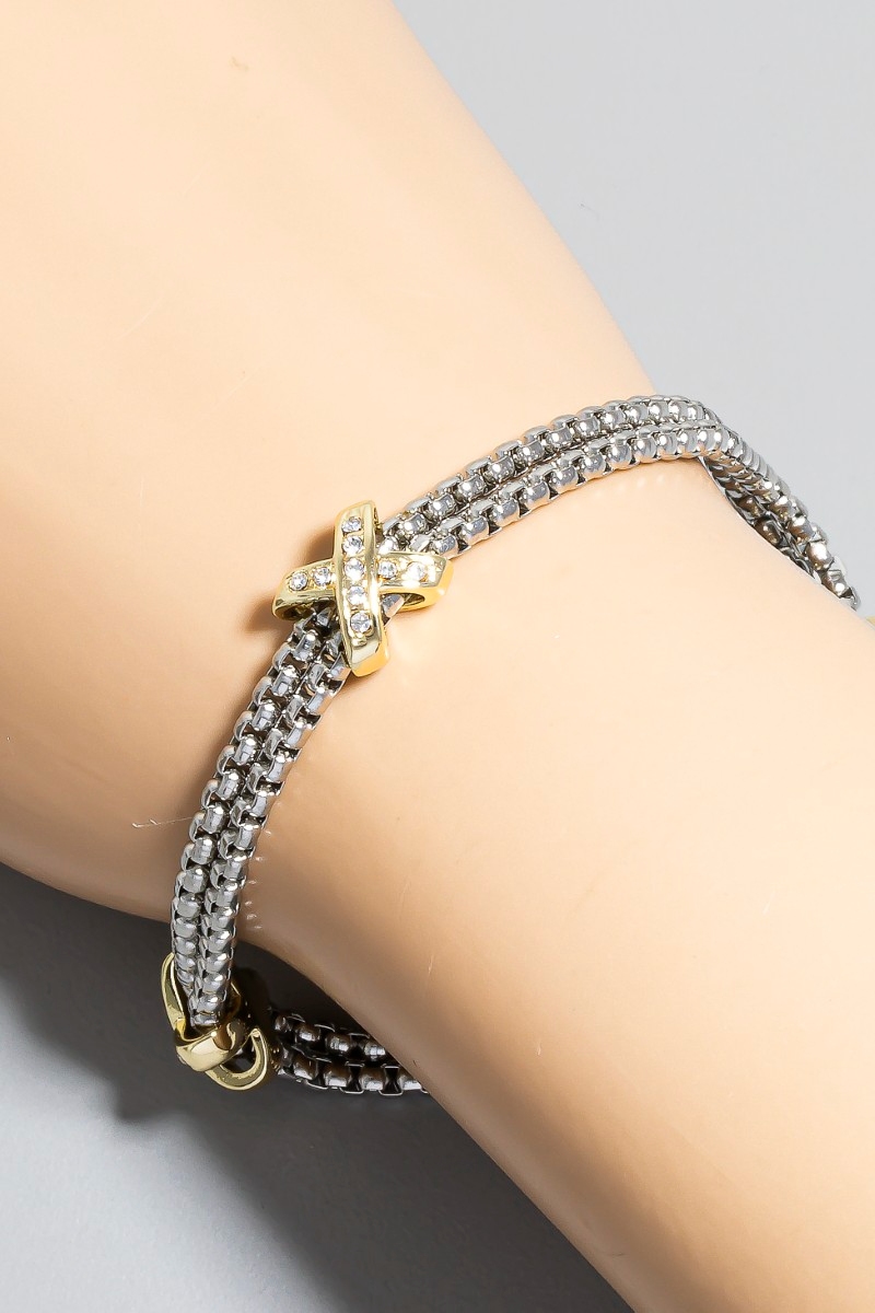 - This chain bracelet introduces a stunning 2 tone gold plated cubic zirconia pave double rope style. Unveil a new dimension of sophistication as this chain bracelet effortlessly enhances the elegance of your ensemble.