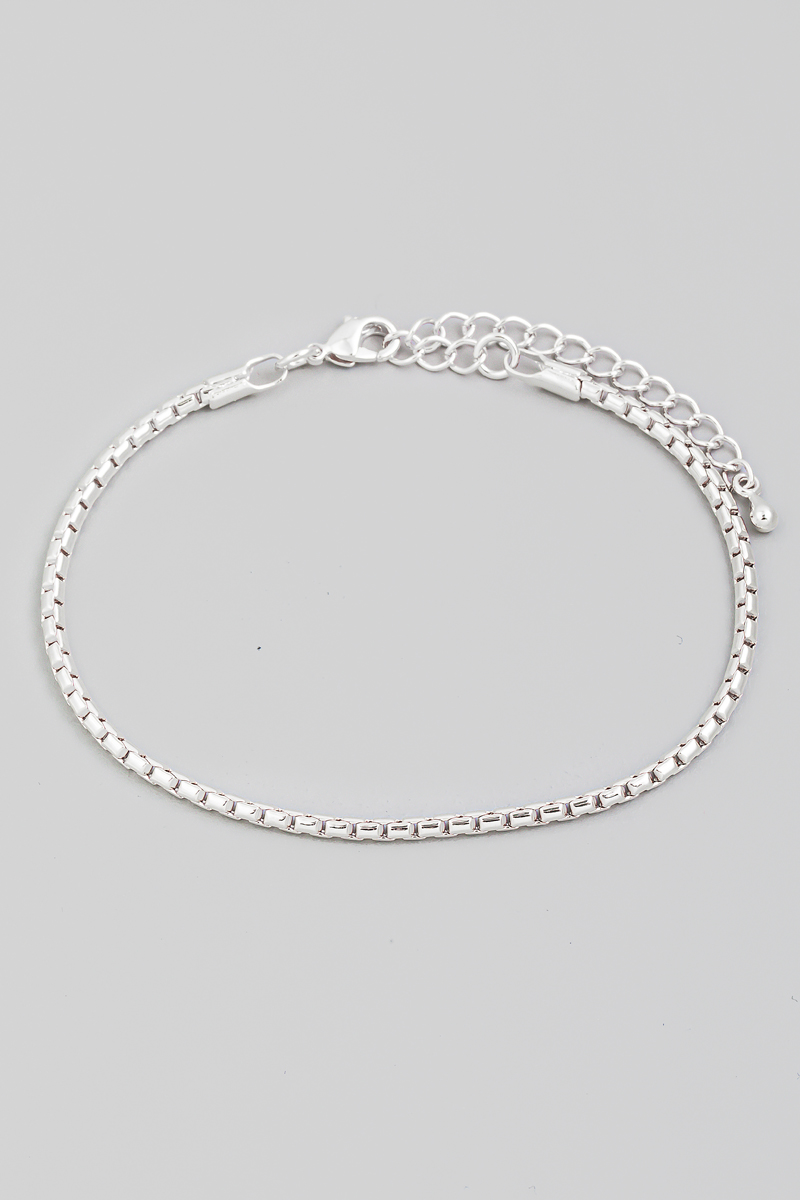 • This bracelet adds a modern box chain swivel clasp style. Experience a subtle blend of modernity and classic charm as this accessory effortlessly adorns your ensemble.