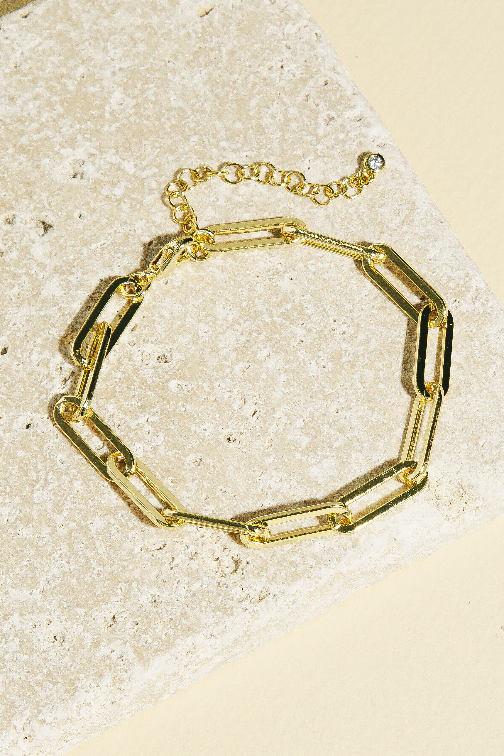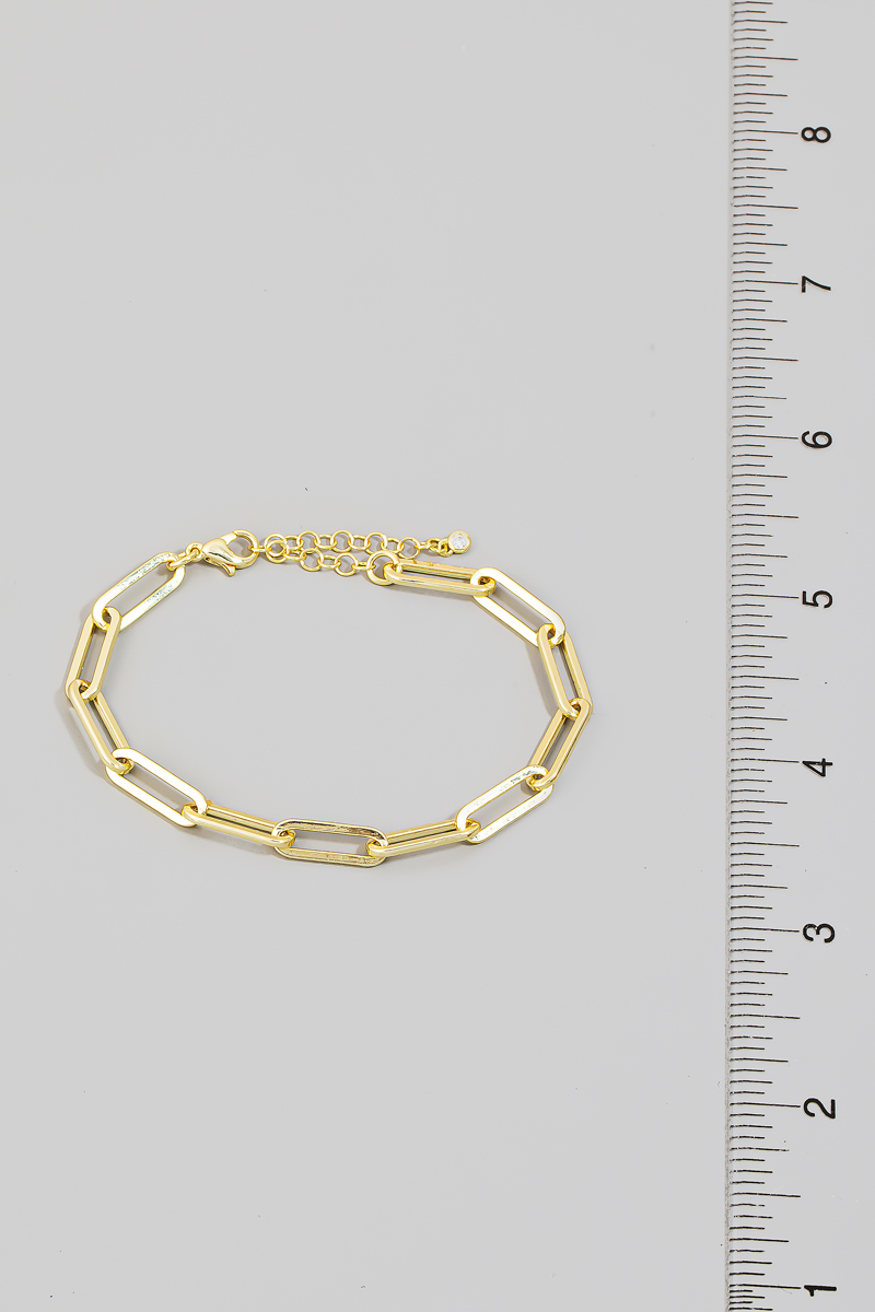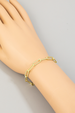 • This chain bracelet adds a modern gold dipped oval style. Savor the craftsmanship that goes beyond the ordinary, as this accessory effortlessly captivates attention.