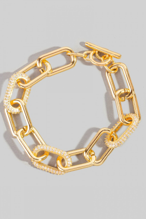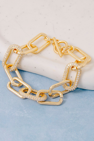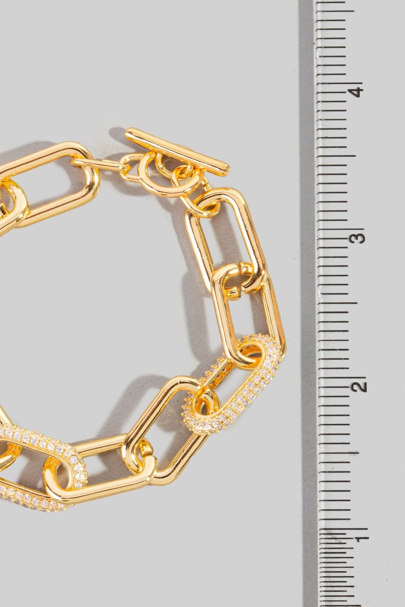 - This chain bracelet showcases a timeless gold dipped simple cubic zirconia oval toggle style. Celebrate individual style with this versatile, eye-catching addition.