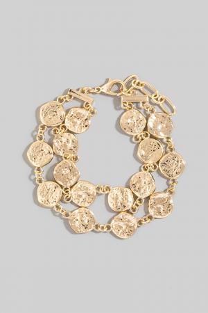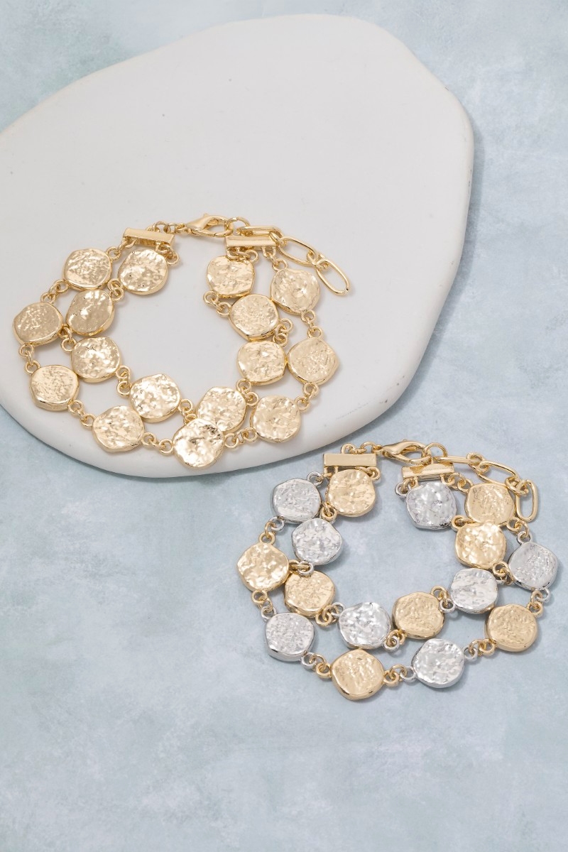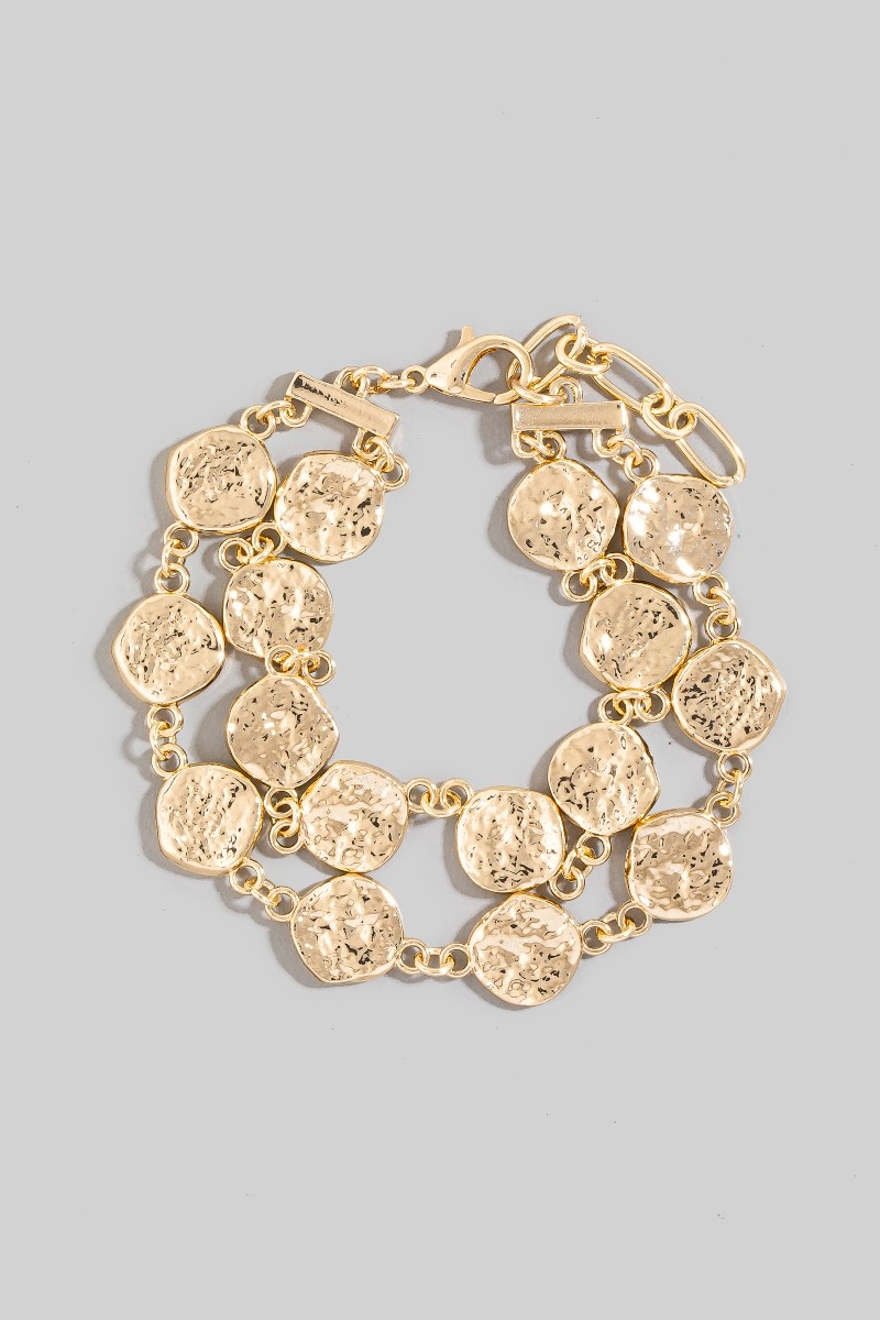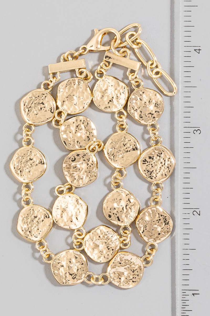 - This chain bracelet displays a fashionable hammered disc link style. Witness the perfect fusion of style and functionality as this chain bracelet effortlessly complements your lifestyle.