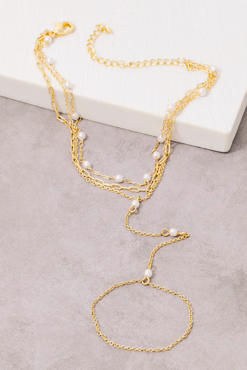 • This chain bracelet introduces a stunning intricate hand pearl bead style. Immerse yourself in fashion finesse with this statement chain bracelet.