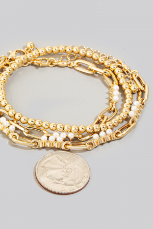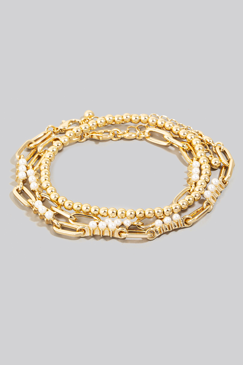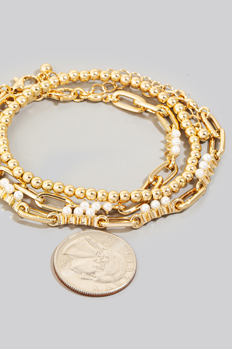 • This chain bracelet showcases a unique pearl beads mixed layered s style. Redefine your look effortlessly with this standout, on-trend piece.