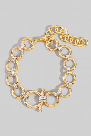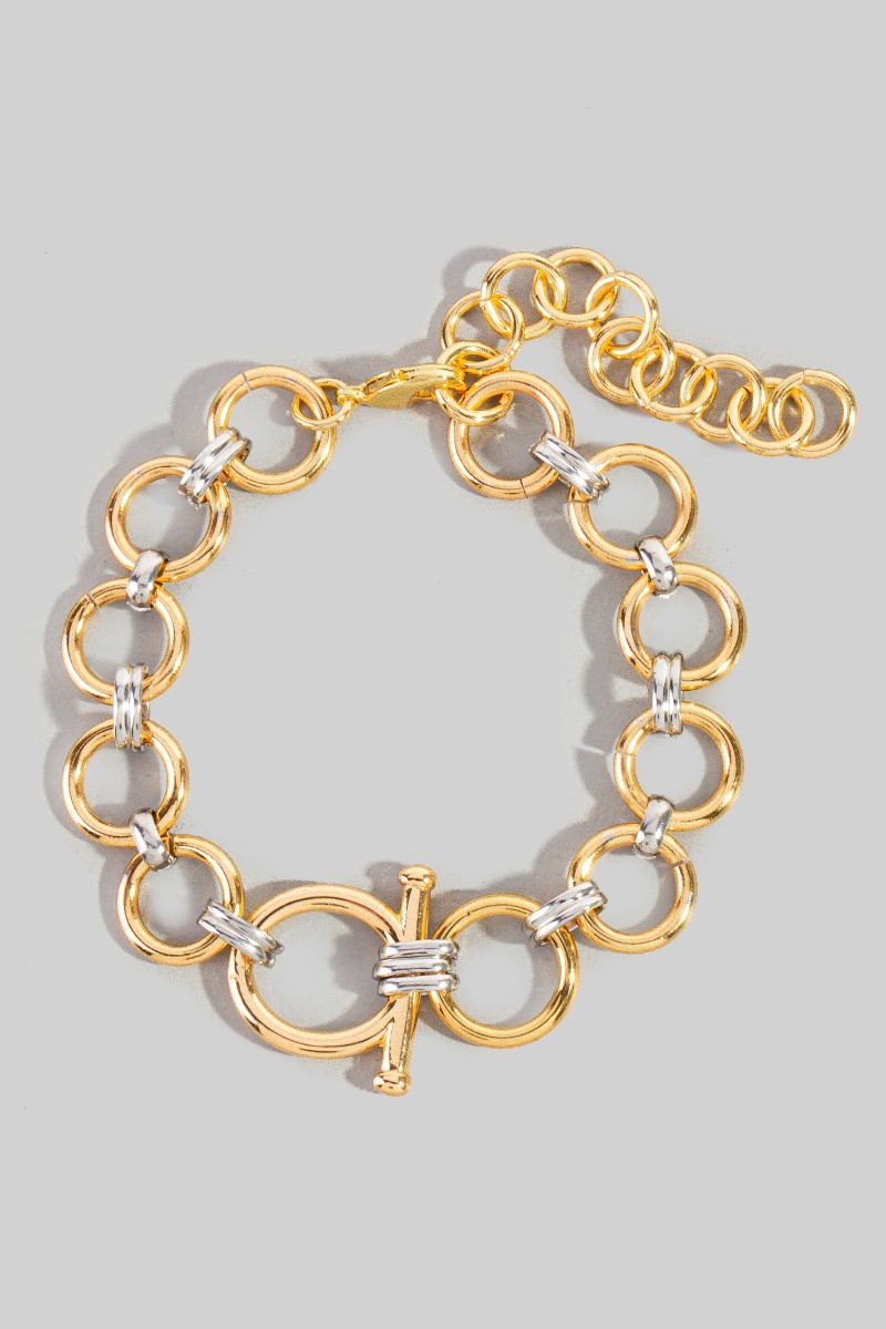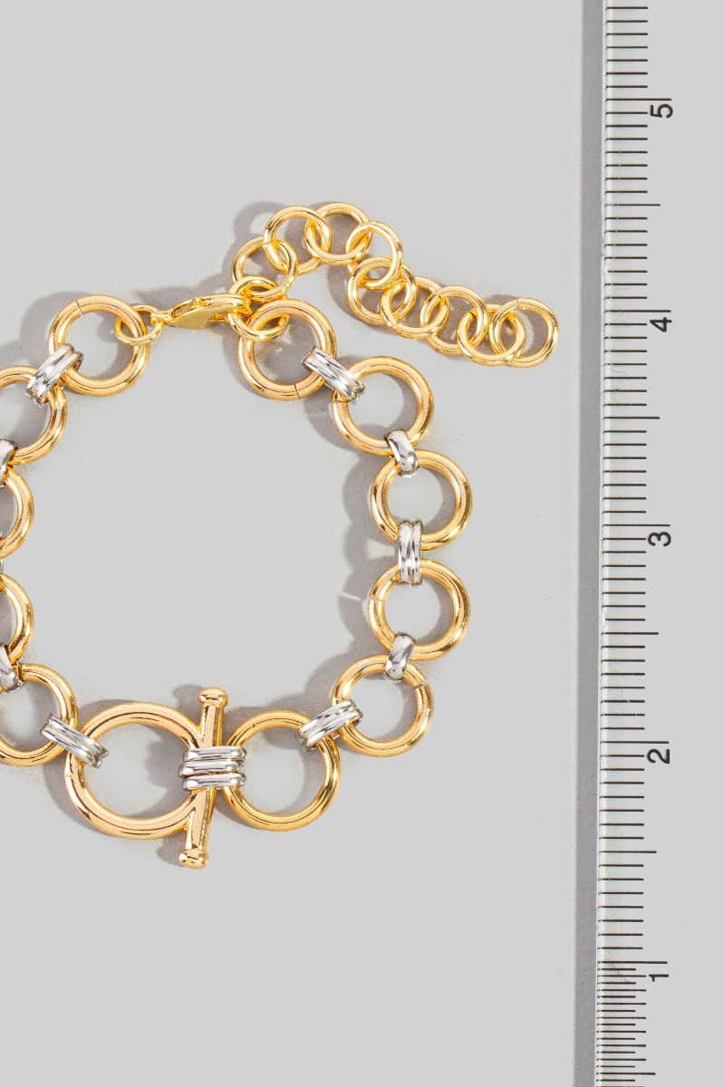 - This bracelet displays a fashionable two tone intricate chain link style. Celebrate the art of accessorizing with this piece that effortlessly encapsulates modern trends.