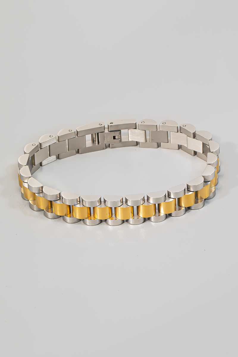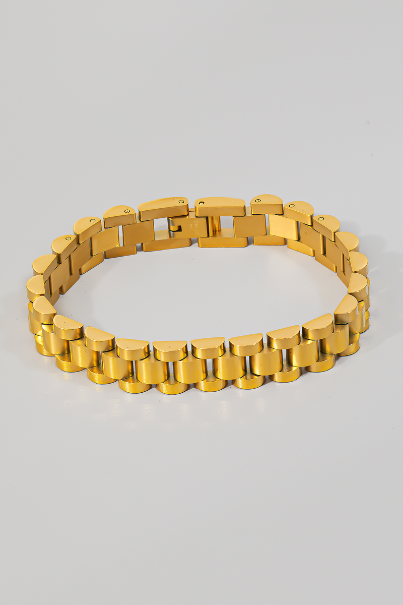 - This chain bracelet displays a vibrant wide rounded watch style. Indulge in the artistry of accessorizing with this unique piece.