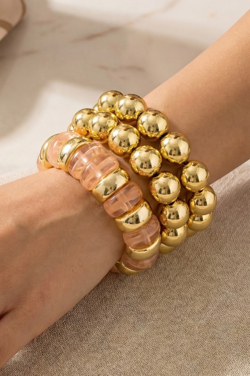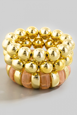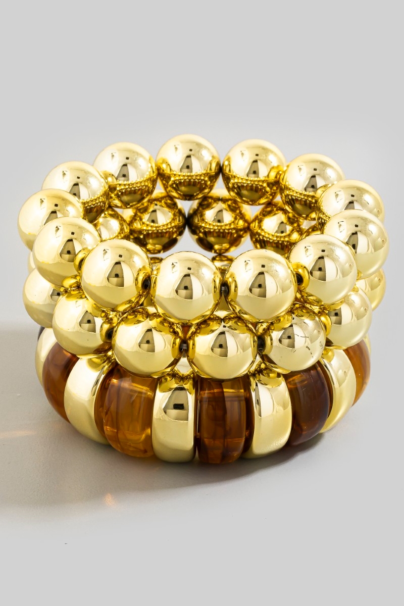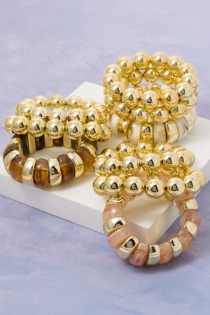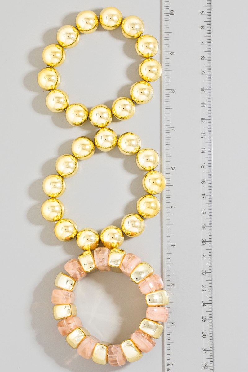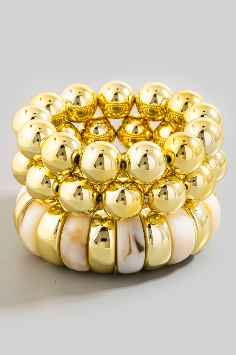 - This bracelet features a fashionable chunky marble resin and metallic ball beaded set style. Witness the transformative power of accessories as this piece effortlessly redefines your fashion narrative.