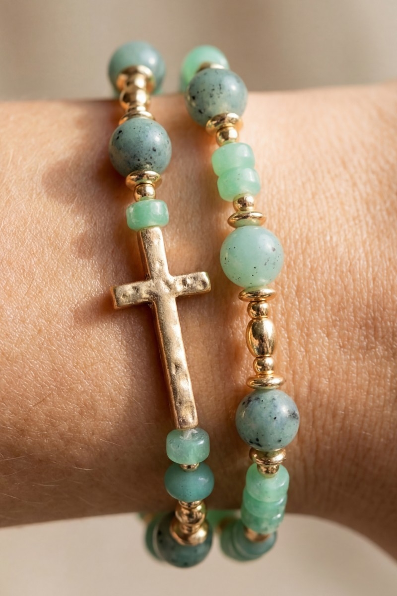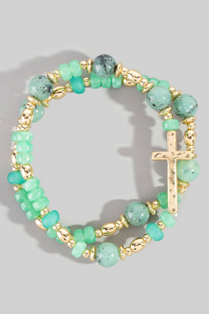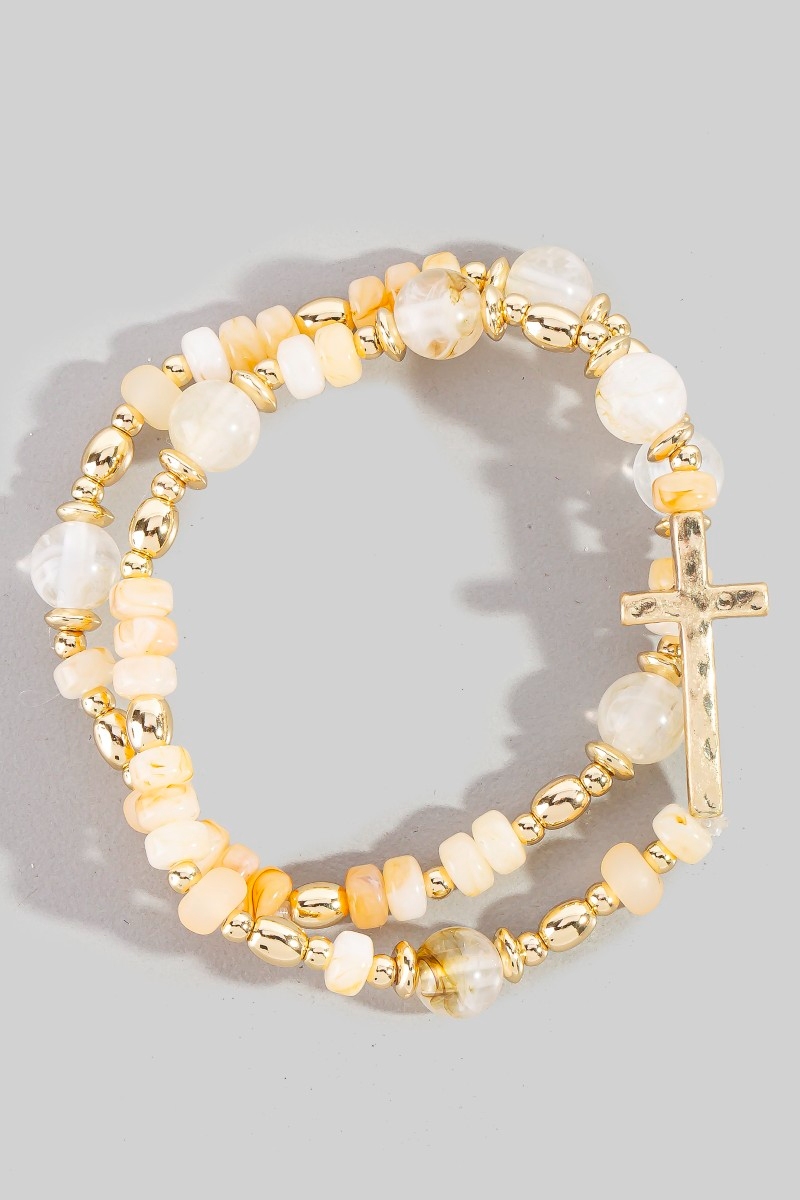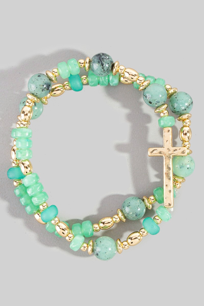 • This bracelet brings a stunning cross charm mixed beaded set style. Savor the craftsmanship that goes beyond the ordinary, as this bracelet effortlessly captivates attention.