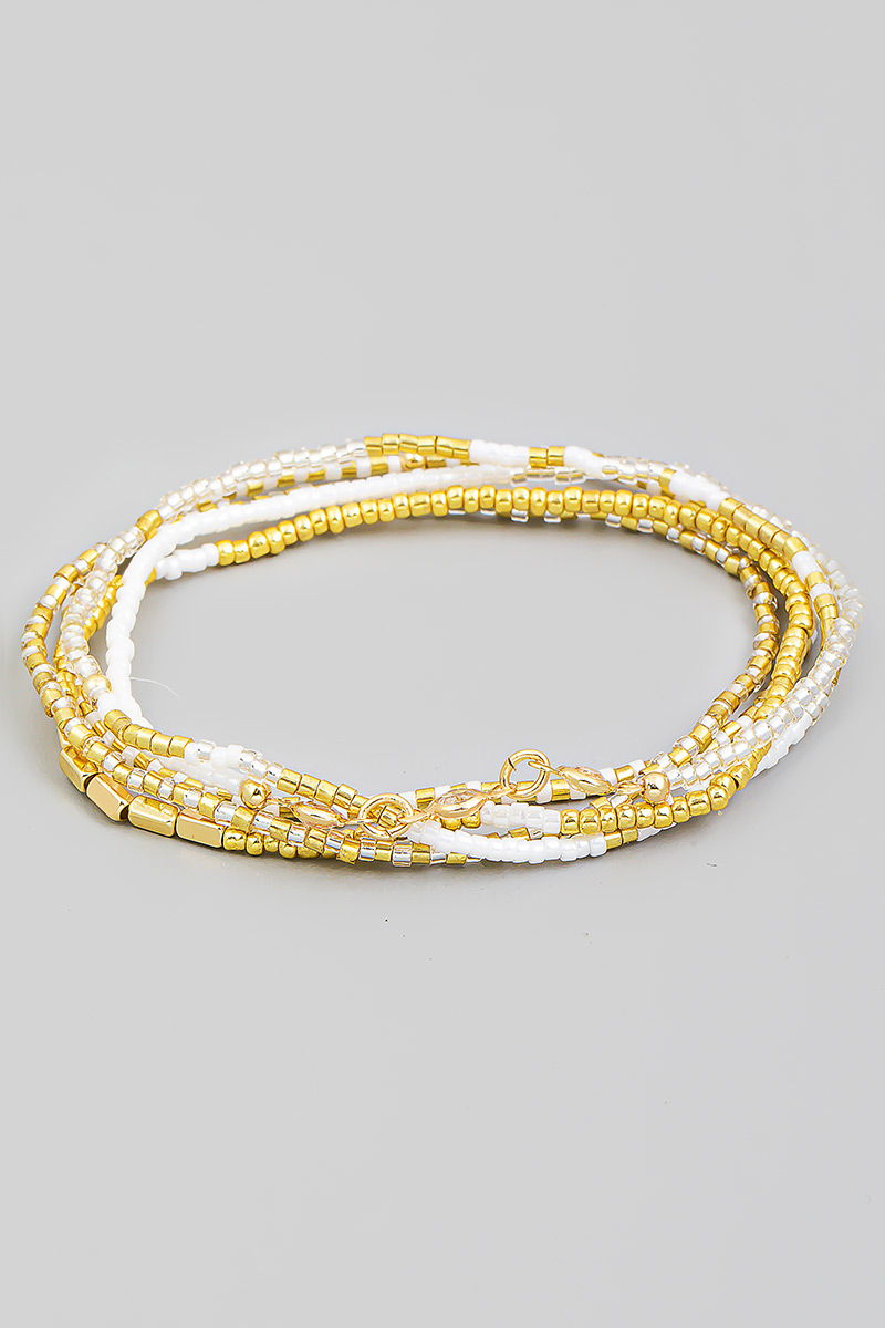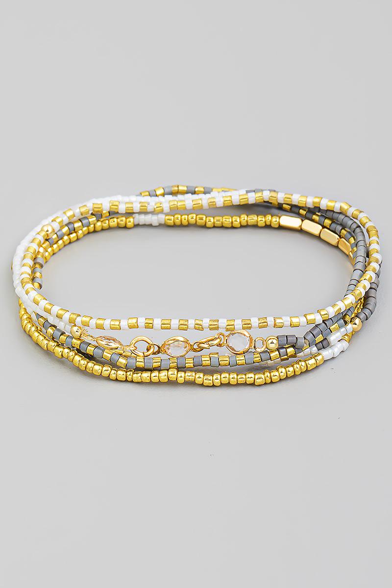 - This bracelet showcases a timeless dainty assorted bead set style. Elevate your ensemble with this chic, timeless bracelet.