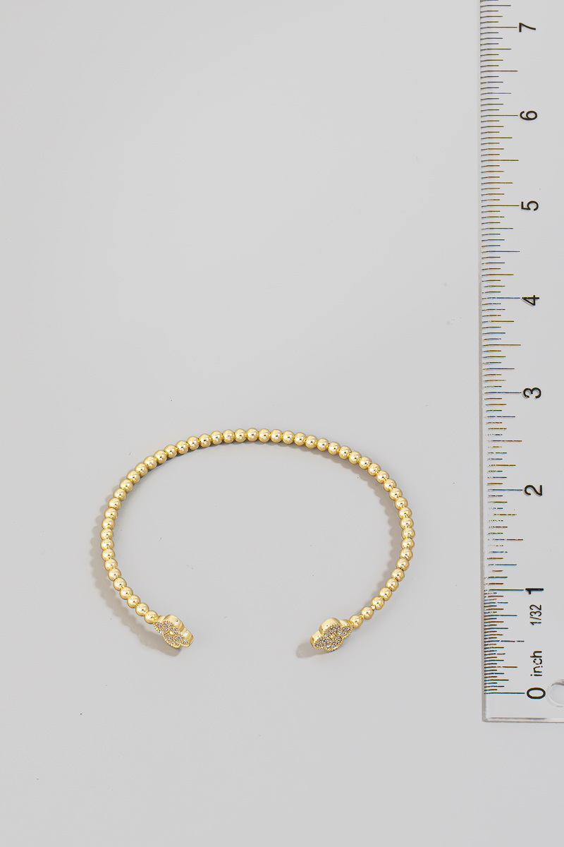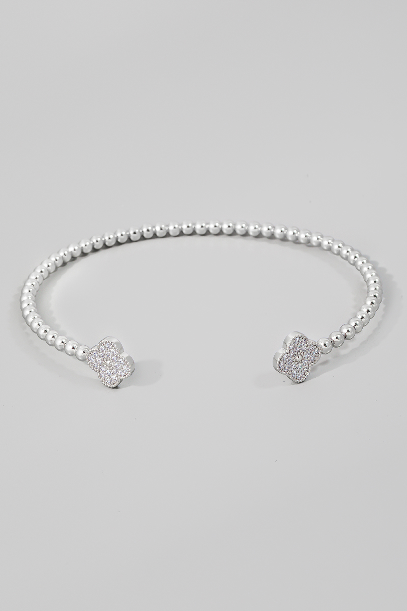 - This cuff bracelet adds a modern double cz pave clovers solid ball bead style. Unveil modern elegance with this subtly intricate accessory.