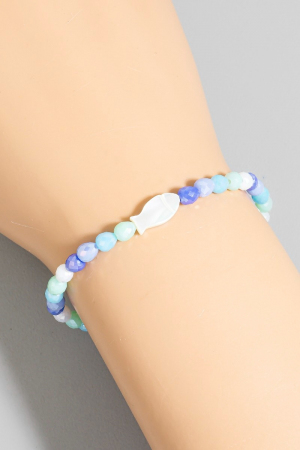 - This bracelet brings a luxurious fish charm glass beaded style. Revel in the intricate design that effortlessly distinguishes this bracelet, making it a statement piece.