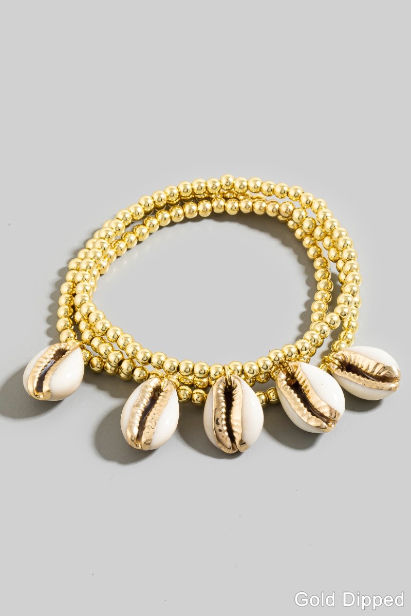 - this columbus jewelry bracelet displays a fashionable gold dipped beads puka shell charms style. Step into a world of refined taste as this columbus jewelry bracelet effortlessly refines the details of your outfit.