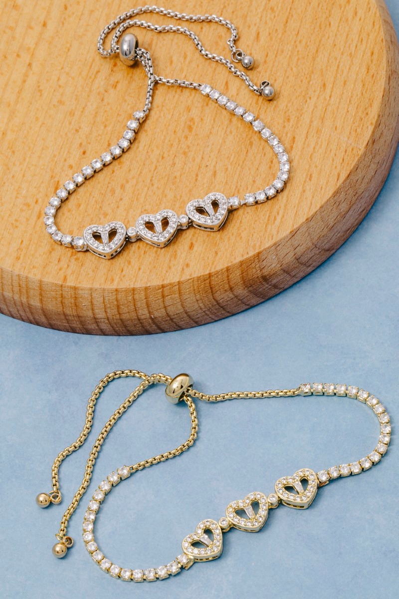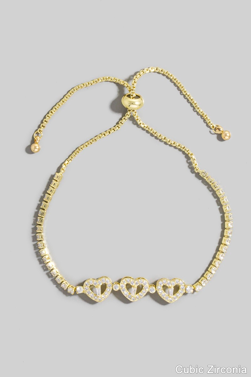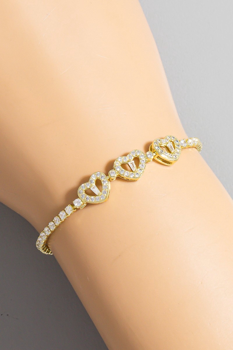 - This chain bracelet displays a fashionable gold dipped cubic zirconia multi hearts tennis style. Experience the joy of accessorizing with this piece that effortlessly combines versatility and charm.