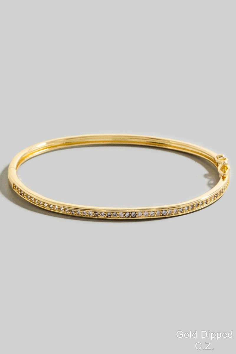 Gold Dipped Square Cz Studded Hinge Bangle Bracelet