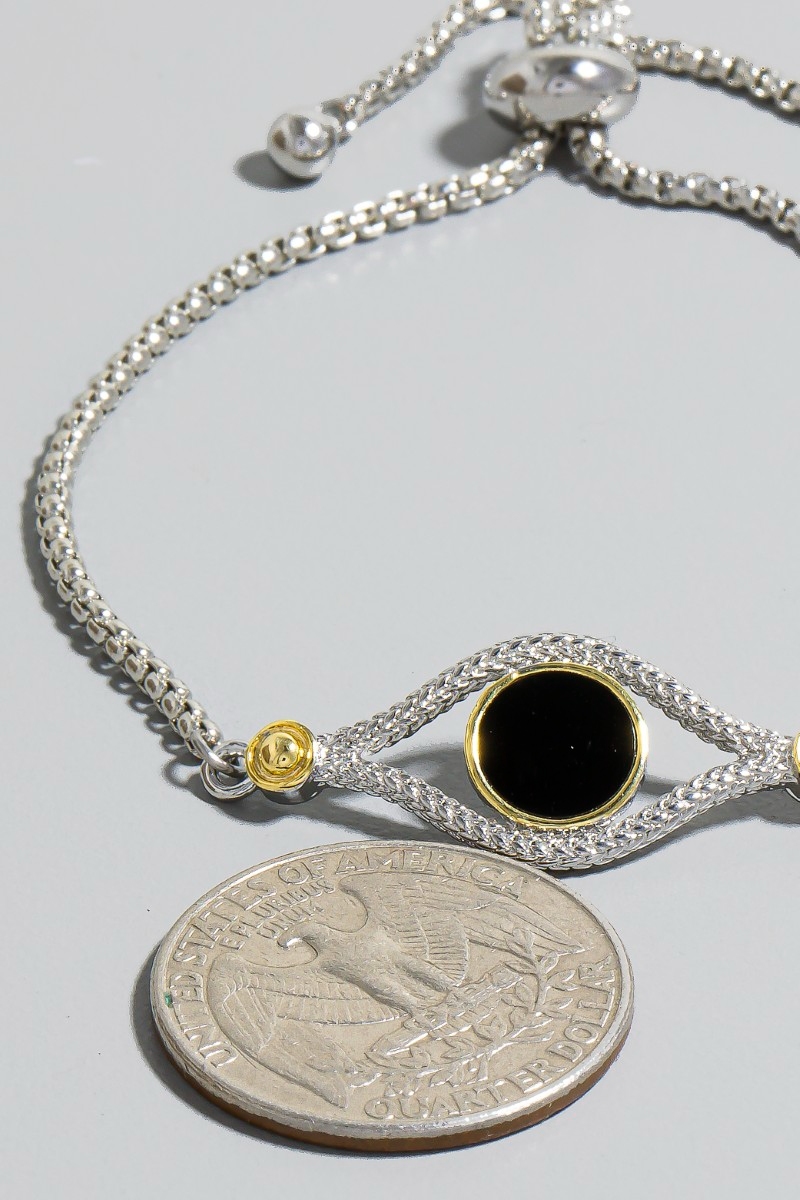 - This chain bracelet displays a fashionable gold dipped eye disc box style. Unveil a new dimension of sophistication as this chain bracelet effortlessly enhances the elegance of your ensemble.
