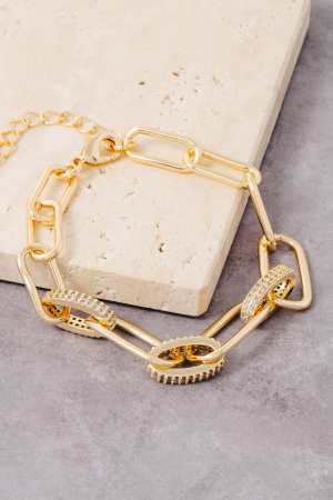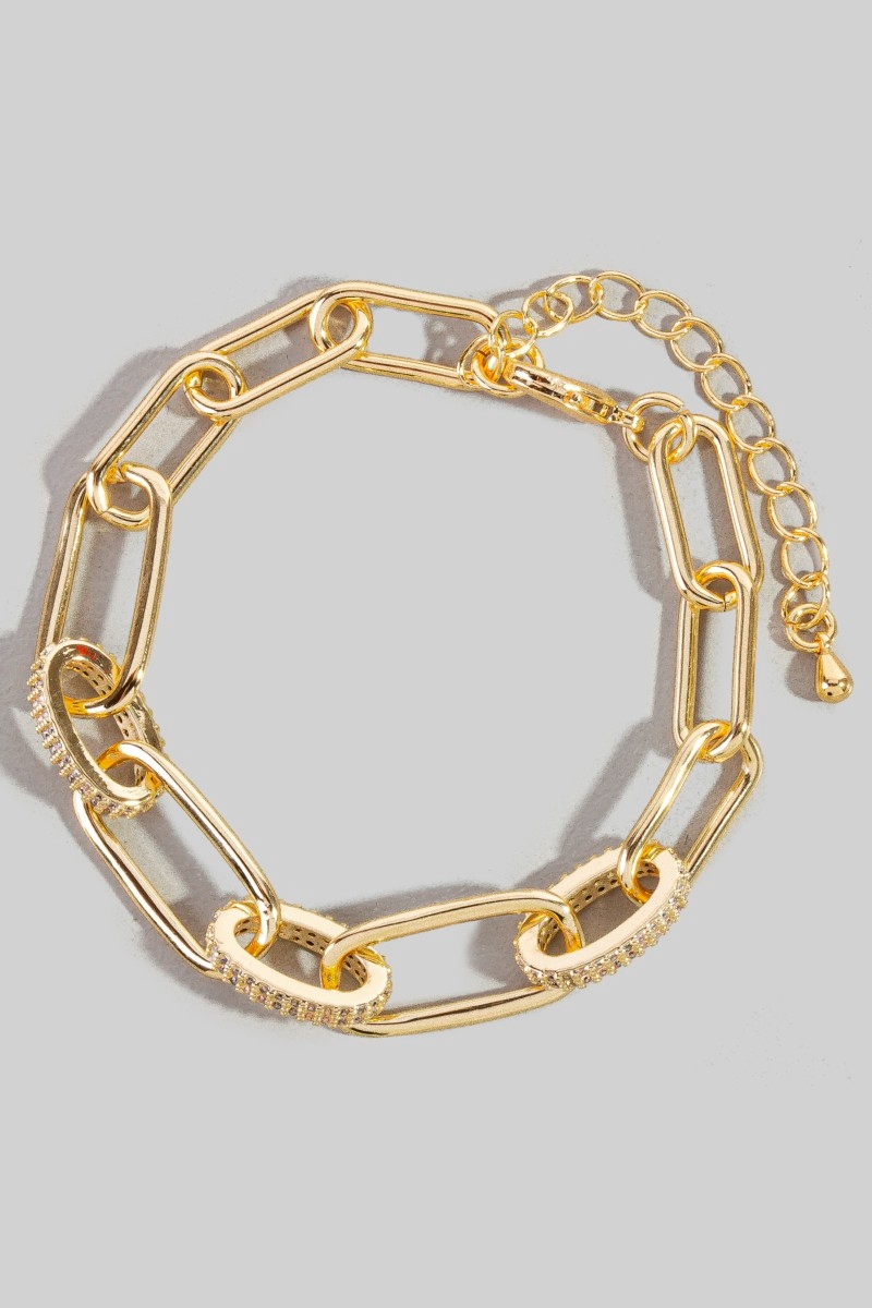 - This bracelet displays a vibrant gold dipped mixed ovals cubic zirconia chain link style. Explore a refined sense of style with this bracelet, seamlessly elevating the chic factor of your look.
