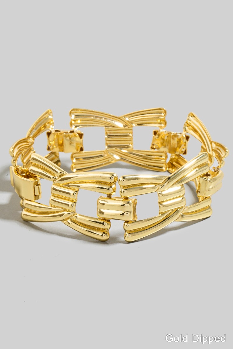- This chain bracelet showcases a timeless gold dipped wide intricate style. Immerse yourself in the details of design, as this chain bracelet effortlessly becomes a conversation starter.