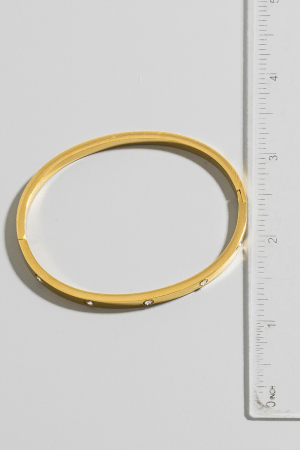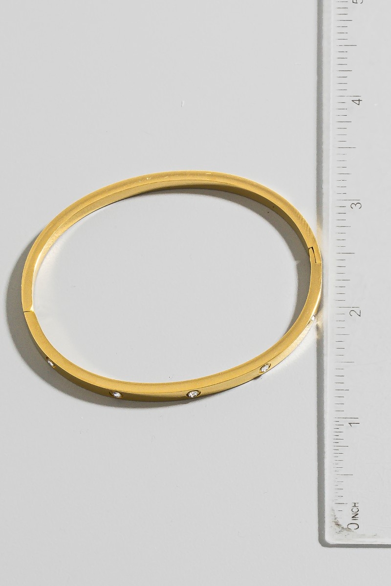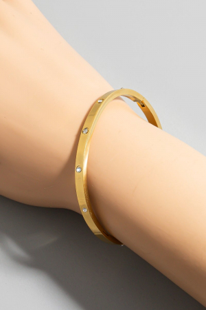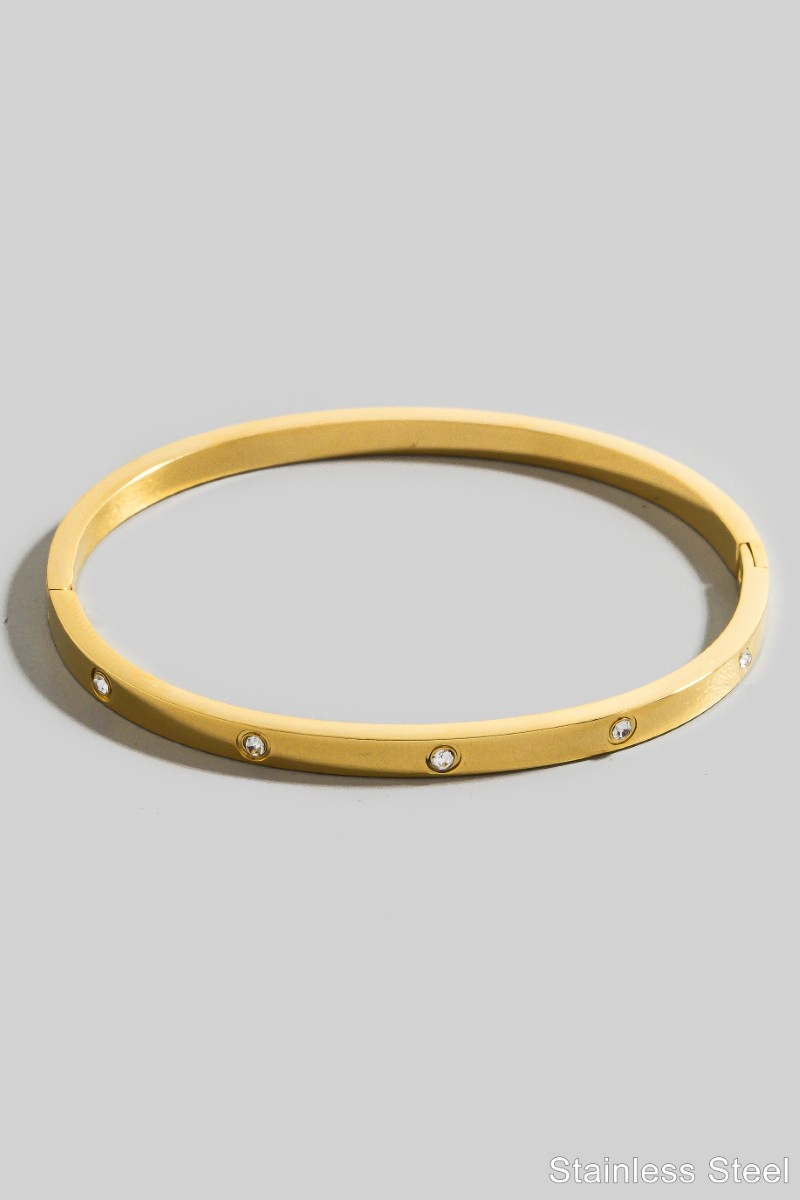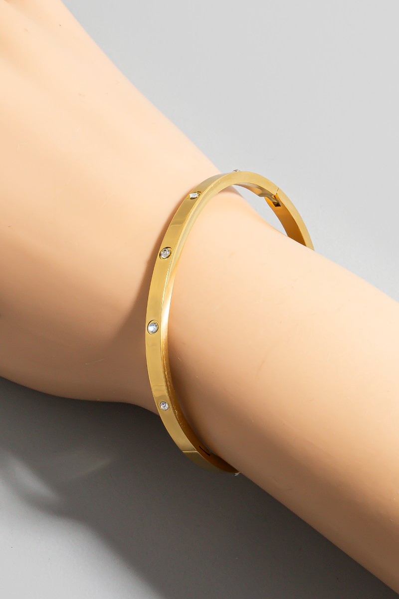 - This bangle bracelet showcases a unique stainless steel cubic zirconia studded gold plated style. Discover the perfect balance of functionality and fashion.