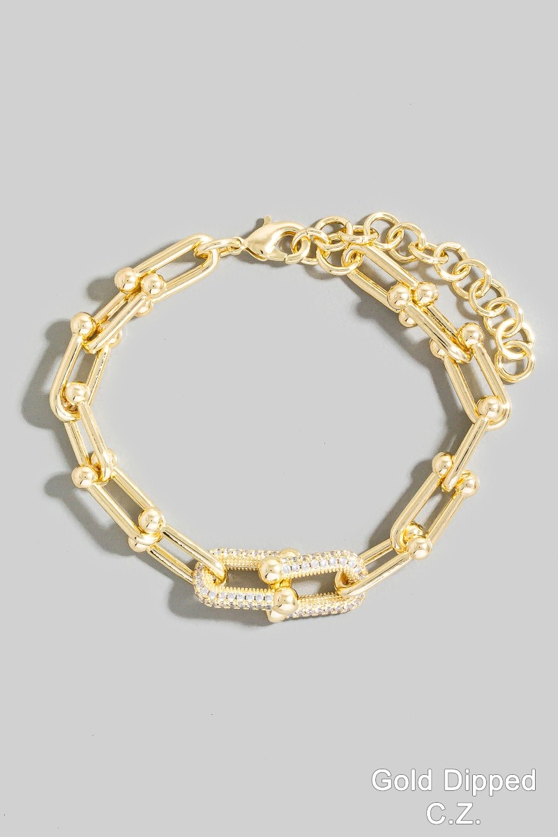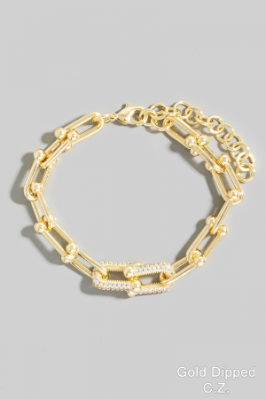 - This chain bracelet adds a modern gold dipped cubic zirconia pave u link style. Savor the allure of detailed craftsmanship in this exquisite chain bracelet.