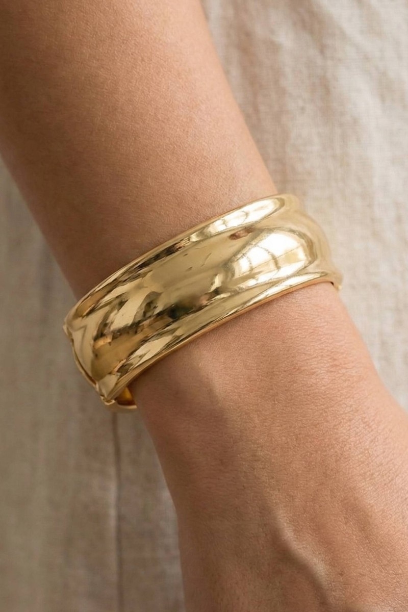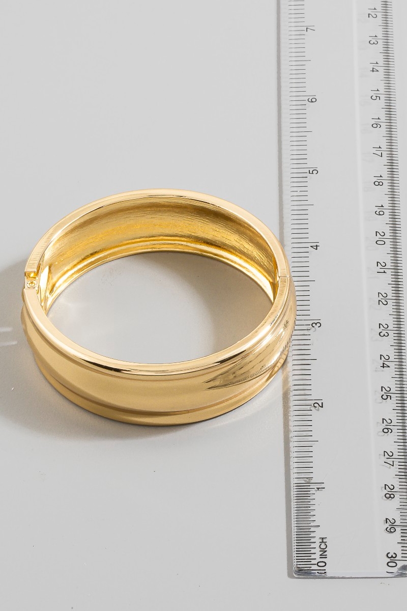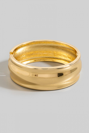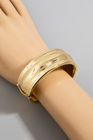 • This bangle bracelet brings a luxurious gold dipped wide ripple hinge style. Delight in the intricate details that make this bangle bracelet an essential element in expressing your fashion identity.