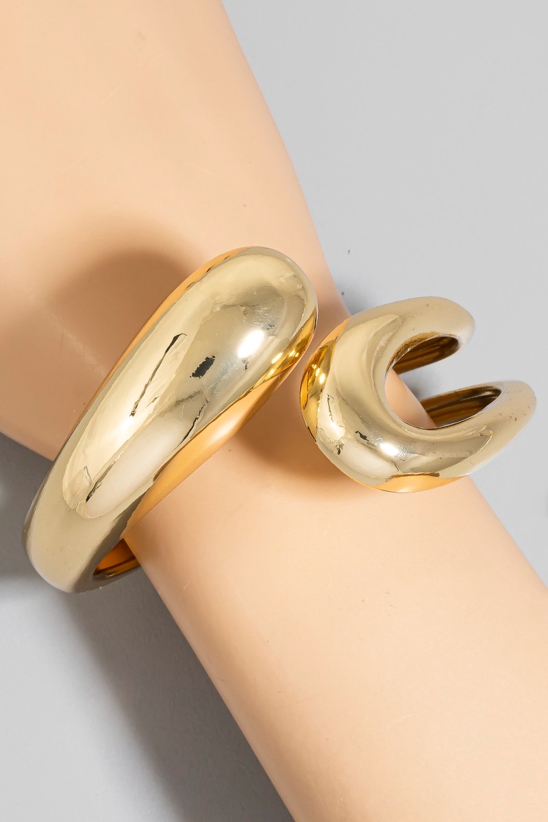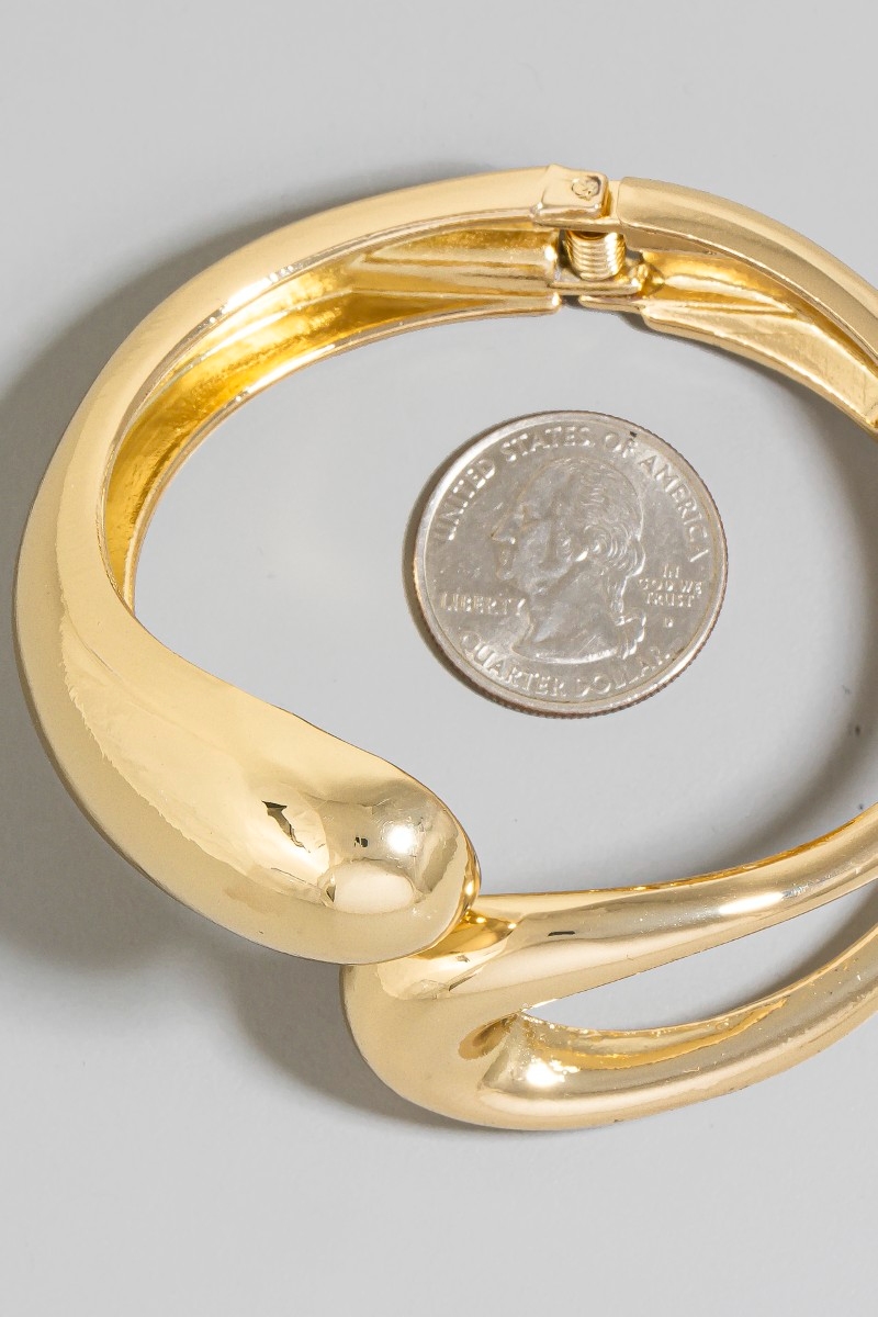 - This bangle bracelet brings a unique gold plated hollow and solid tear hinge style. Savor the craftsmanship that goes beyond the ordinary, as this bangle bracelet effortlessly captivates attention.
