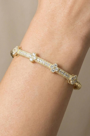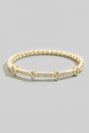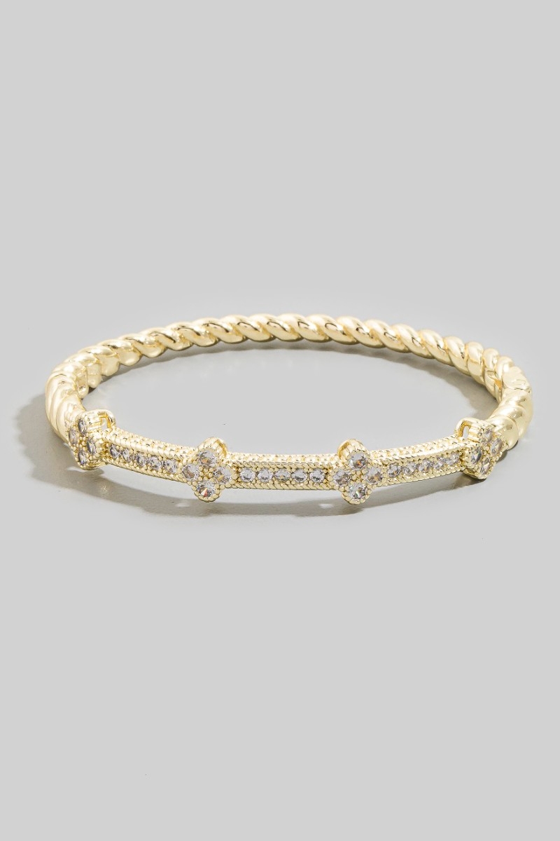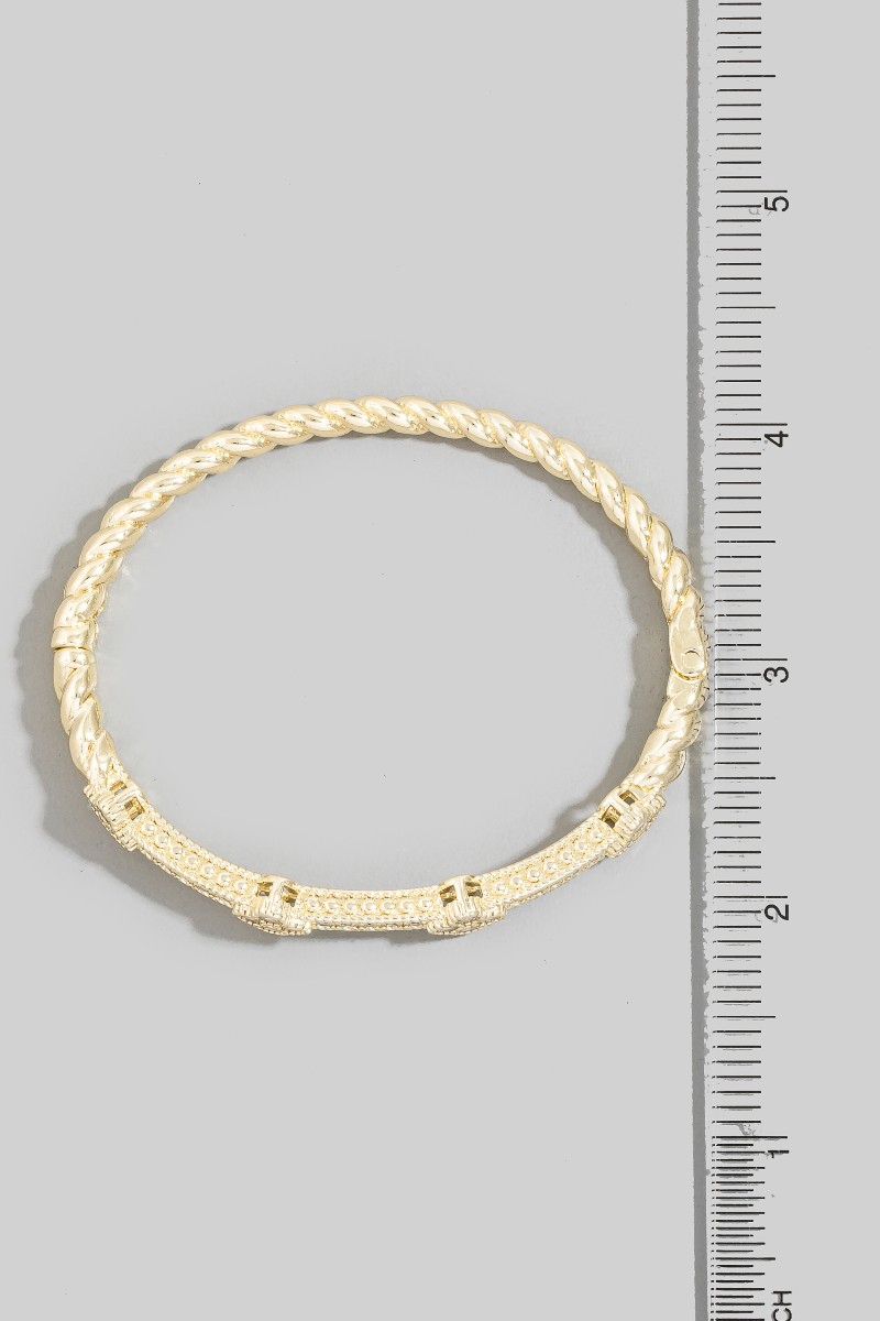 - This bangle bracelet introduces a unique gold twisted rope cubic zirconia flower station style. Celebrate the art of accessorizing with this piece that effortlessly encapsulates modern trends.