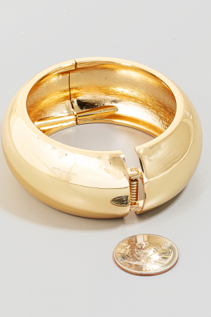 - This bangle bracelet introduces a unique large rounded hinge style. Indulge in the artistry of accessorizing with this unique piece.