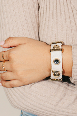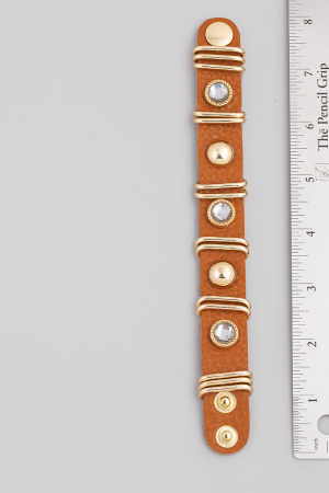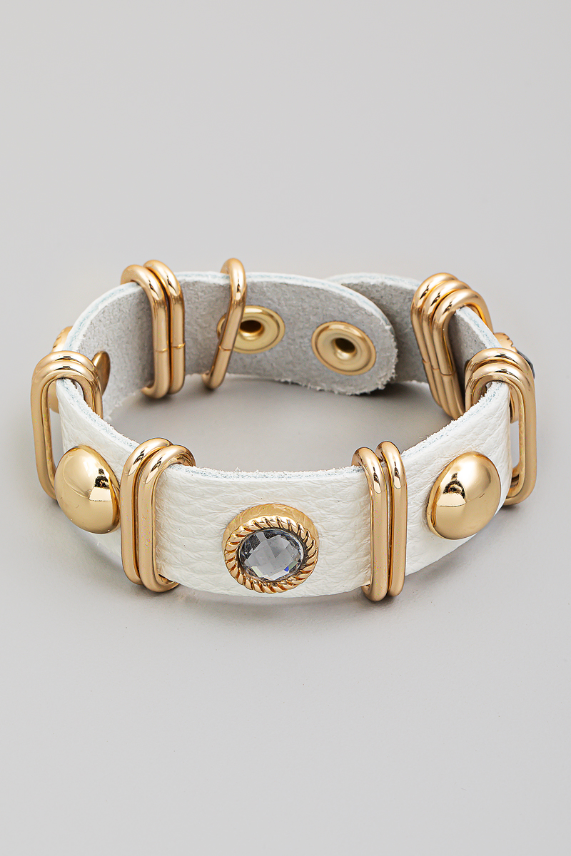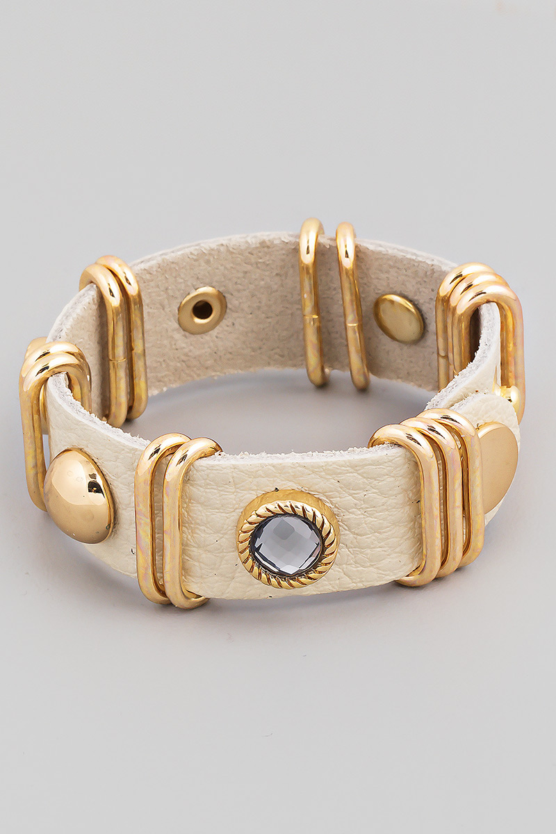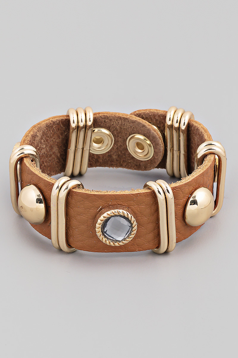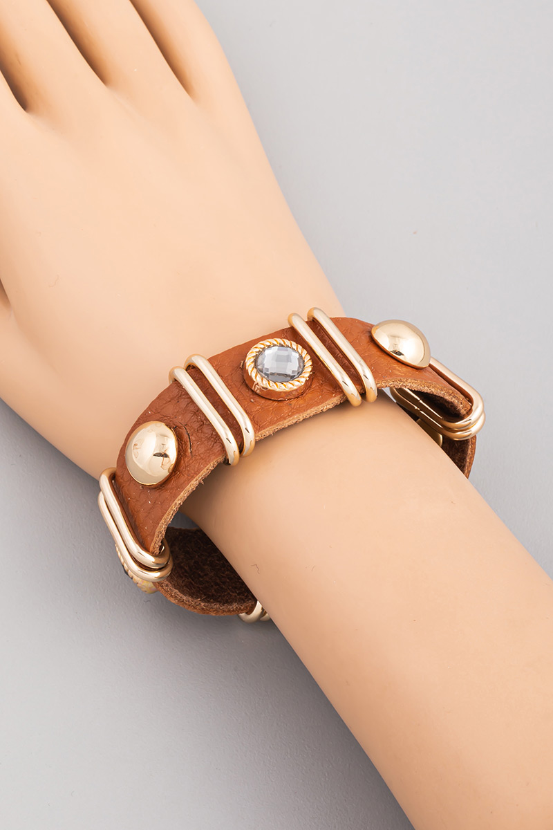- This bracelet introduces a stunning faux leather strap fashion style. Indulge in the allure of exquisite craftsmanship as this accessory effortlessly adds a touch of luxury to your attire.