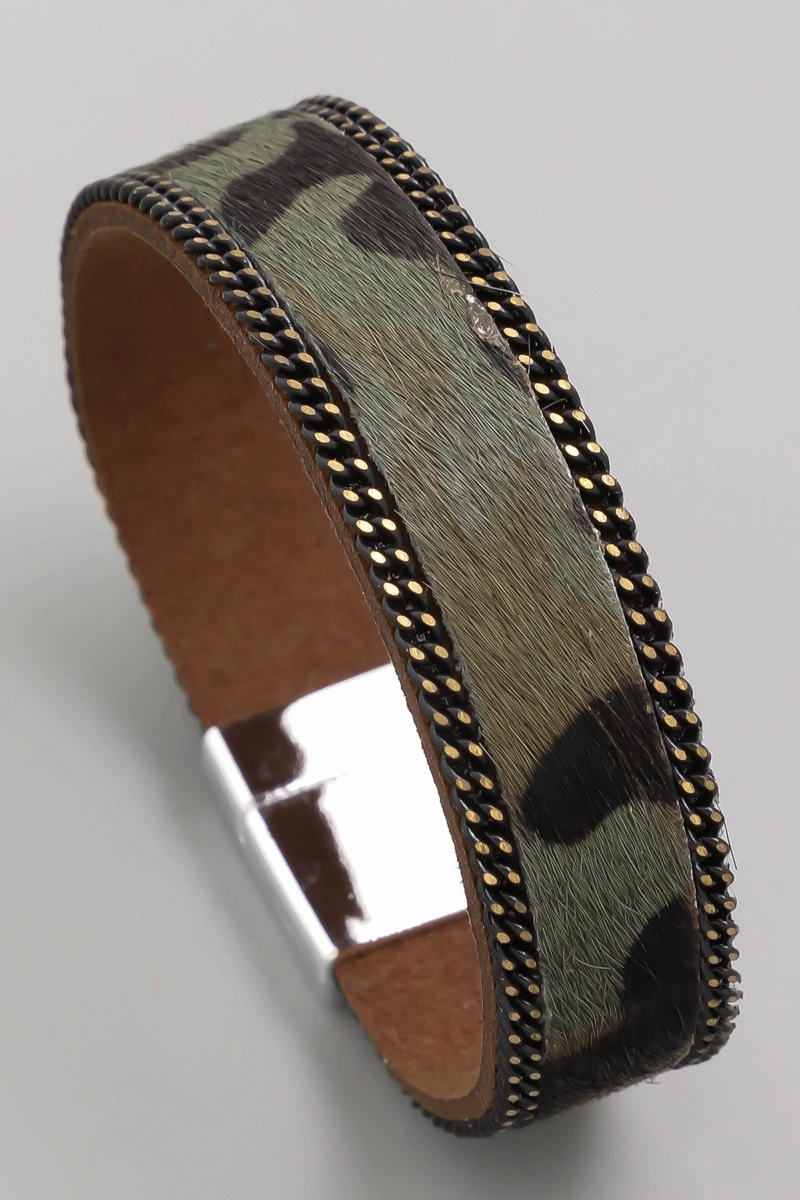 Stainless Steel Inlay Flat Wide Hinge Bangle Bracelet