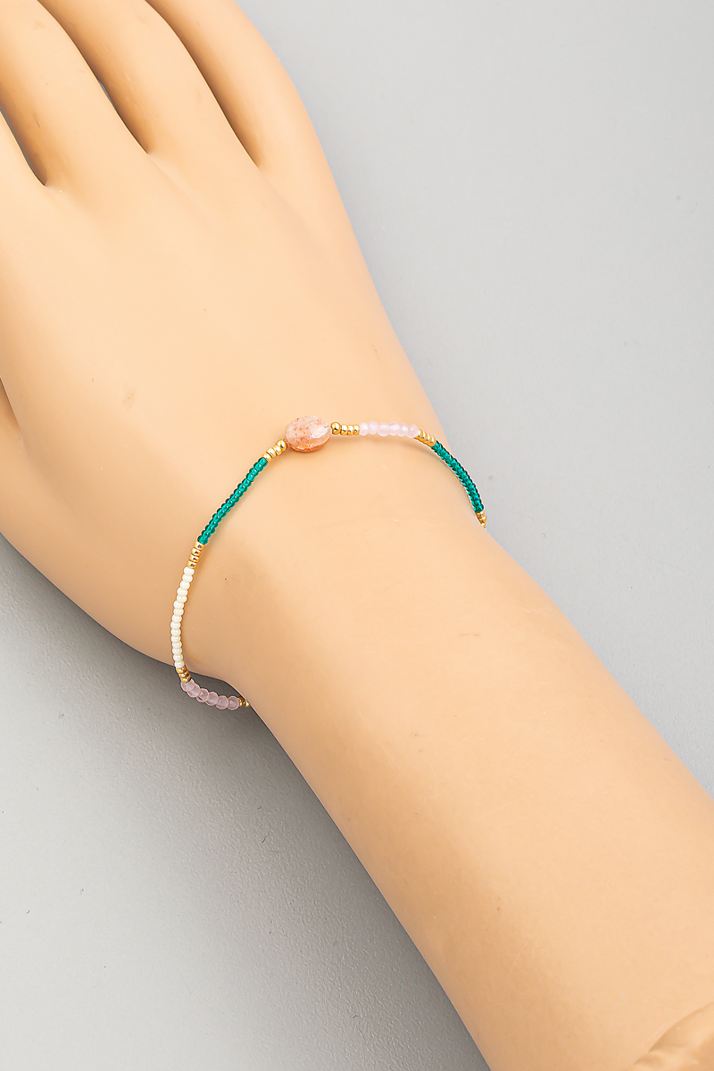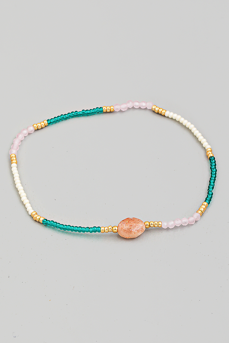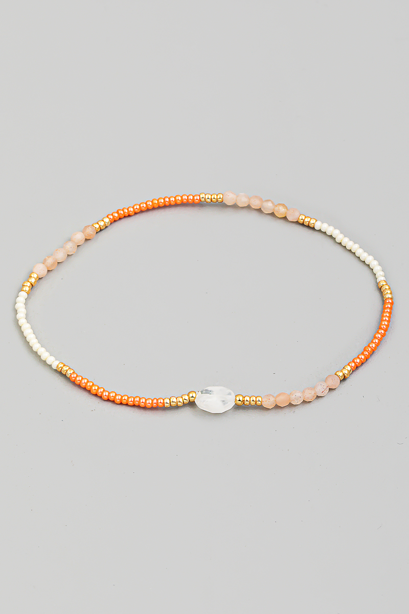 Faceted Stone Charm Mini Metallic Beaded Bracelet