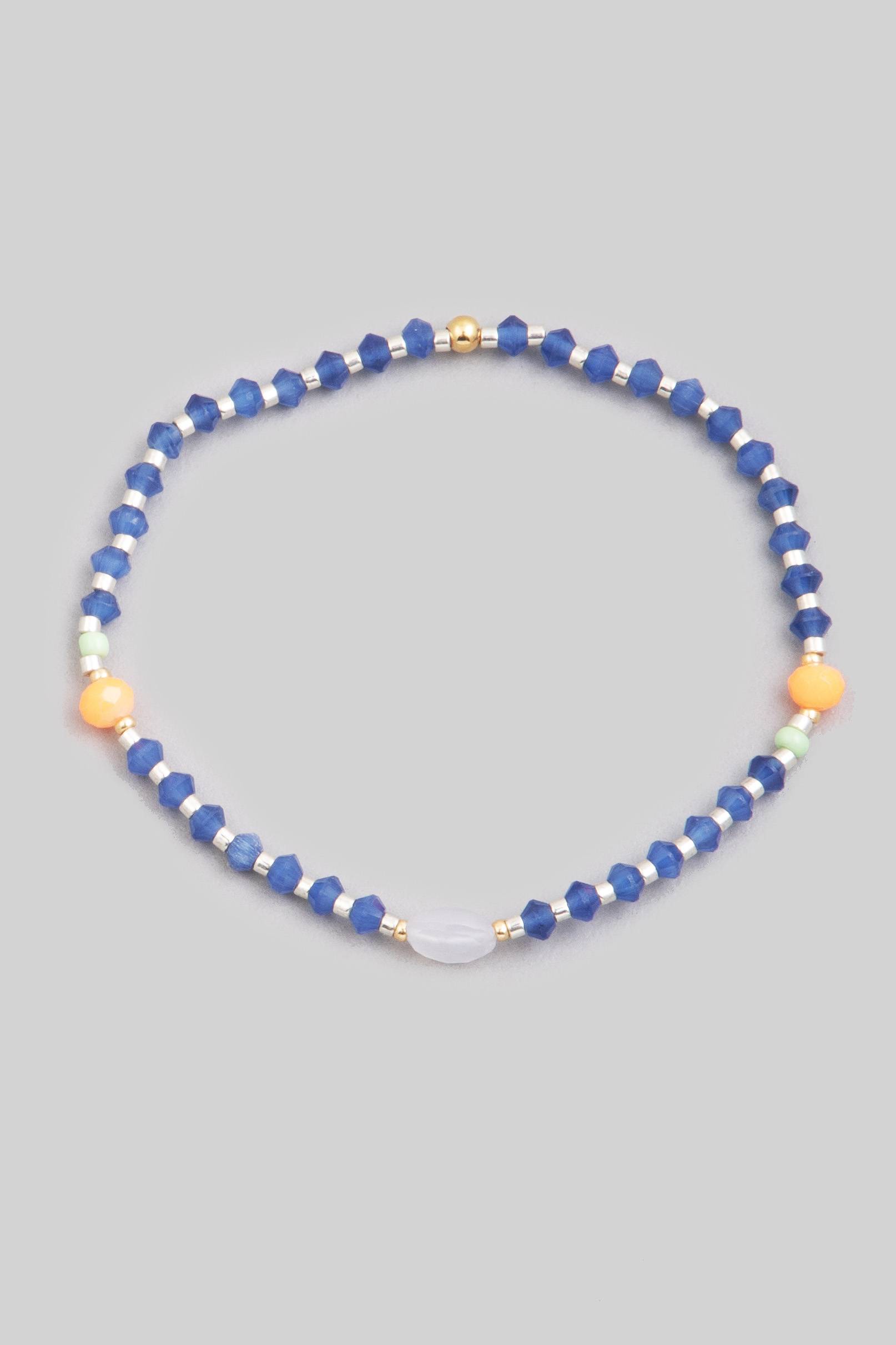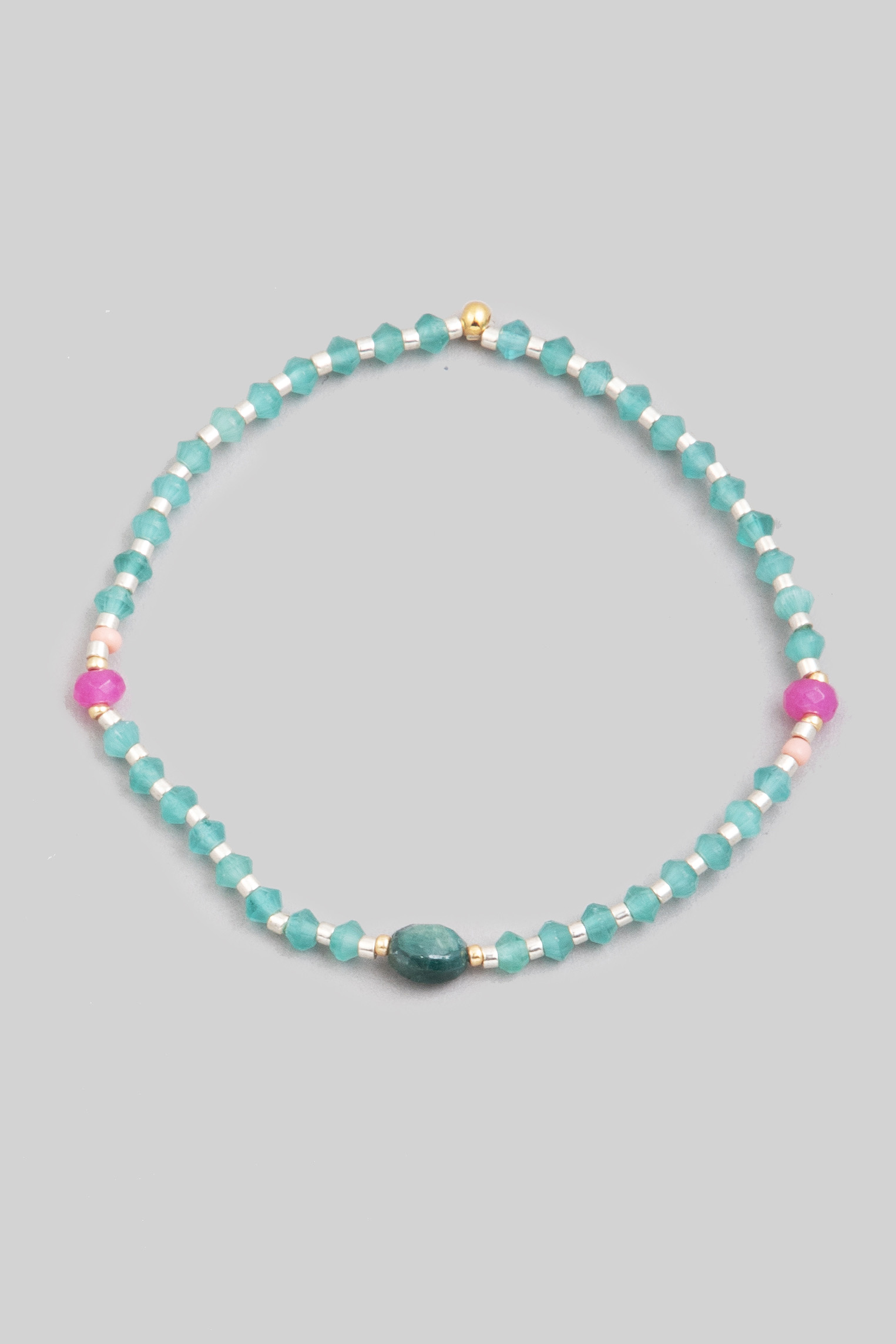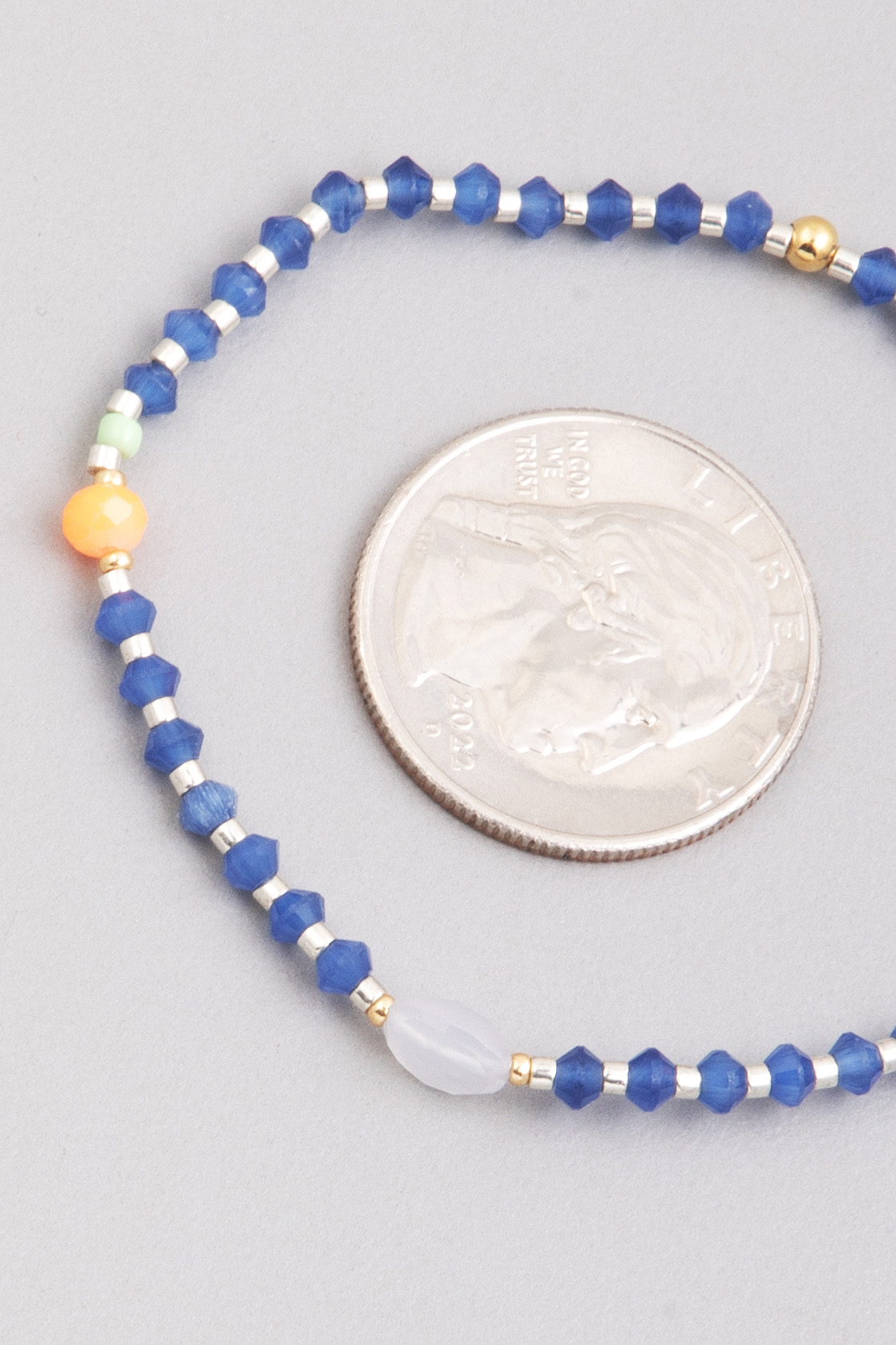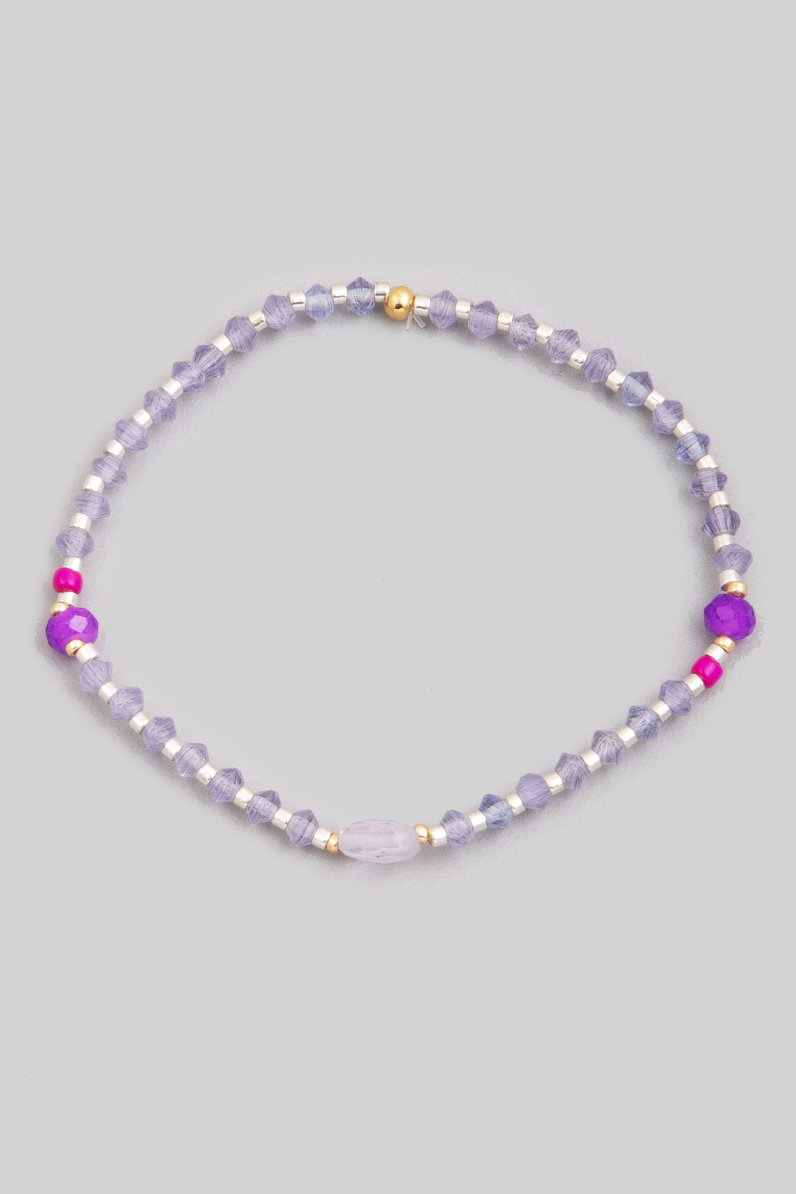 Faceted Stone Charm Mini Metallic Beaded Bracelet
