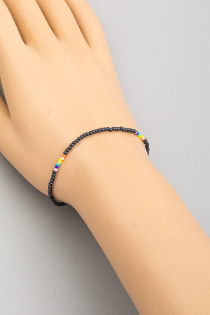 Faceted Stone Charm Mini Metallic Beaded Bracelet